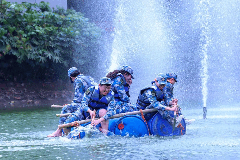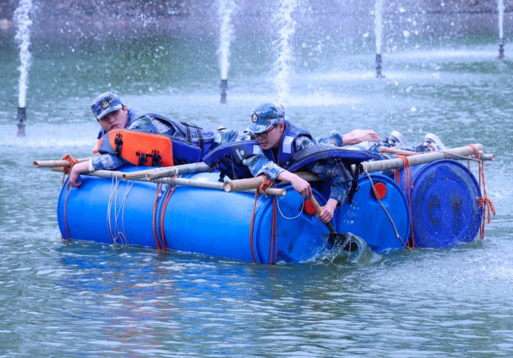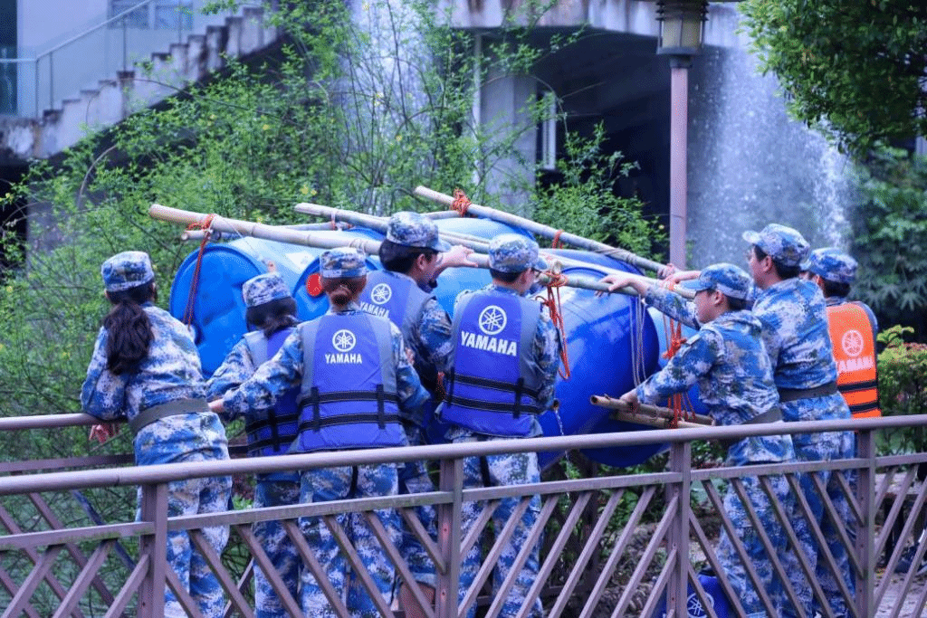 3月27日上午,学员们用12根竹竿6个水桶在双子湖畔进行武装泅渡。克服了组装“小船”的种种困难,大家喊着整齐划一的口号,安全成功的将全队成员运送到目的地。学员们的动手能力、团队协调与配合能力提升更上一个台阶。