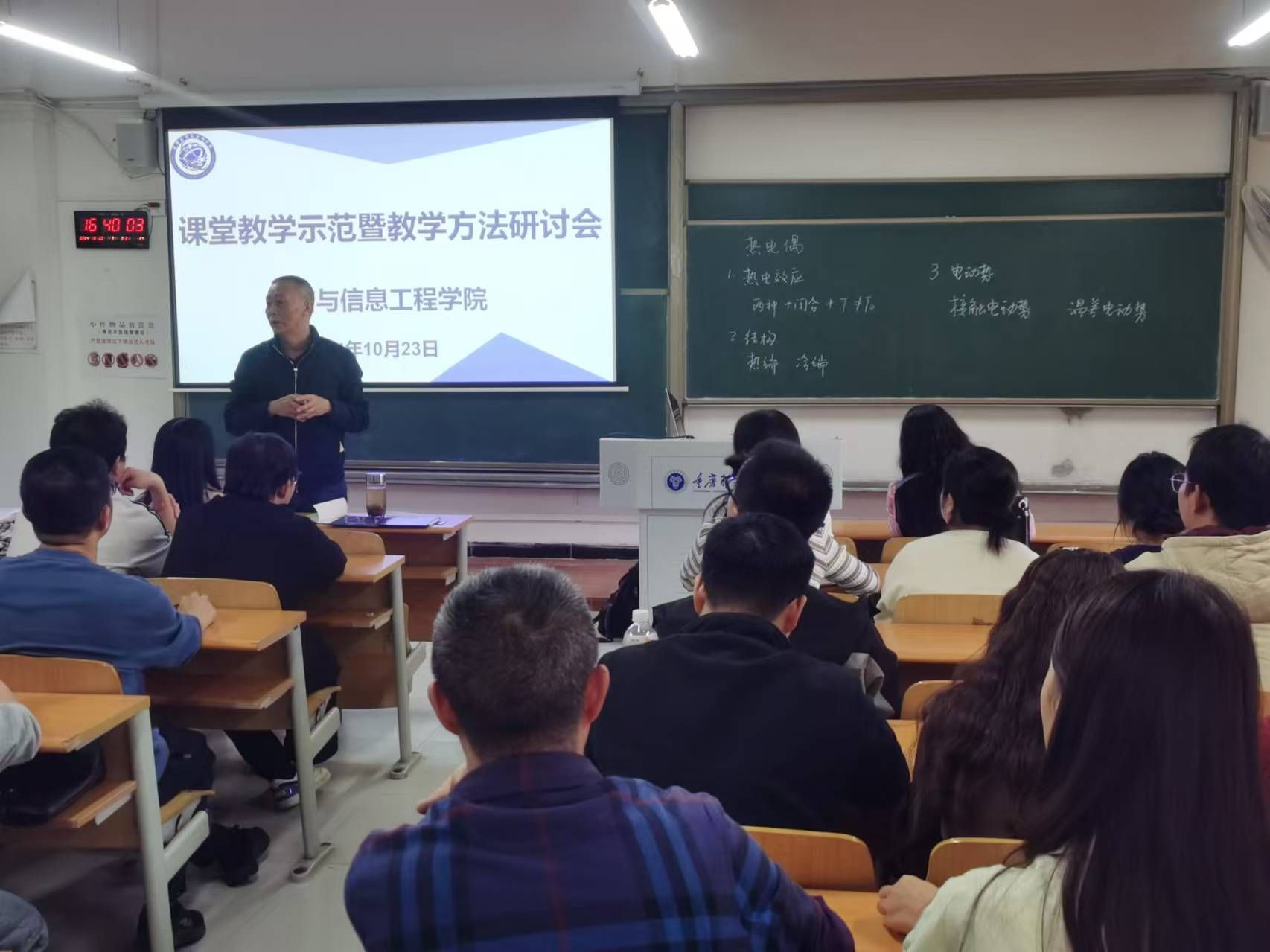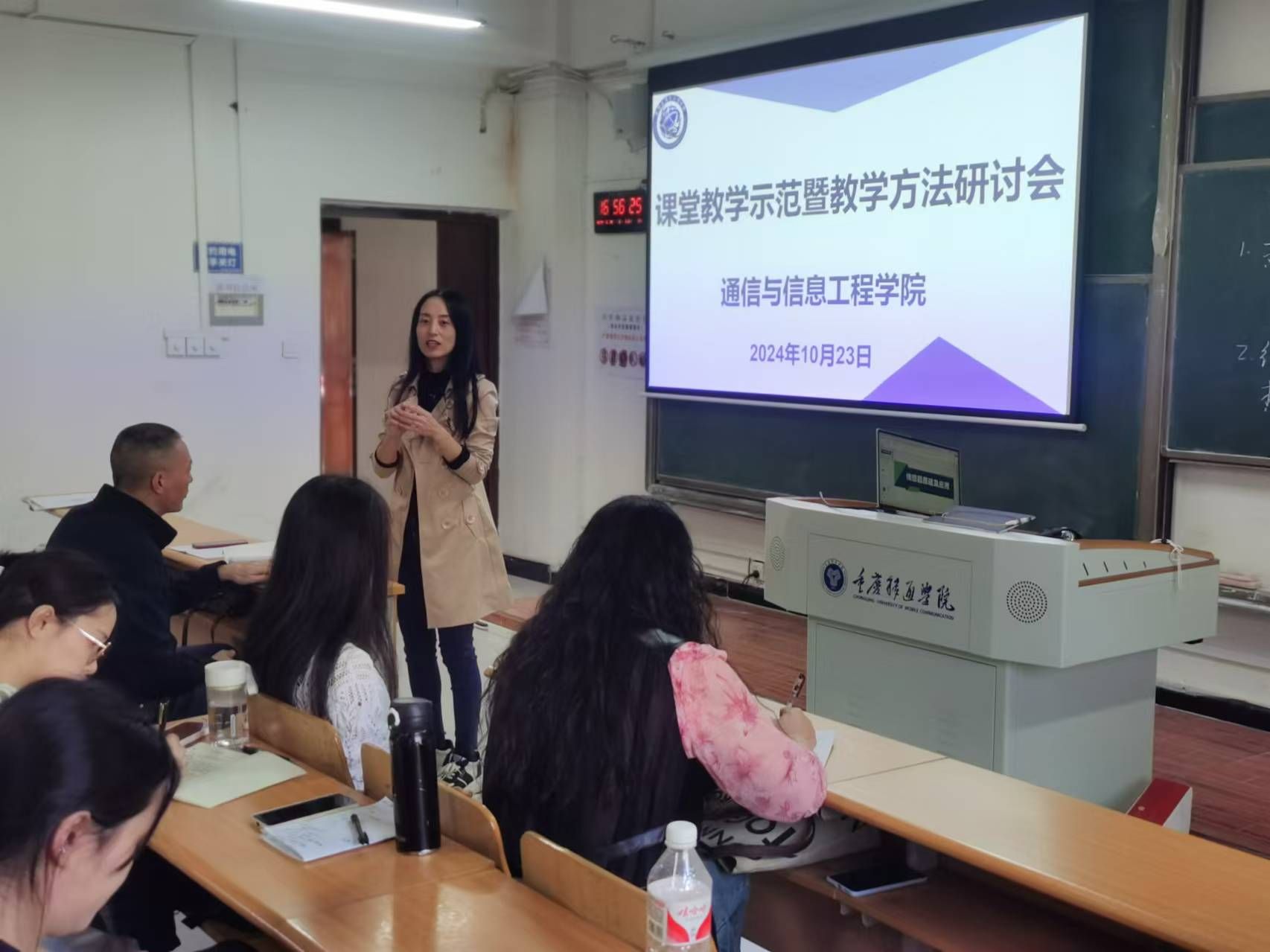为推动教学方法创新,促进青年教师专业成长,通信与信息工程学院于10月23日在7308教室举办了一场别开生面的课堂教学示范暨教学方法研讨会。本次会议由唐林建副院长主持,校级青年教师教学竞赛一等奖获得者程彩玲老师为大家带来示范性课程。李文娟院长和学院青年教师们齐聚一堂,共同观摩与学习。