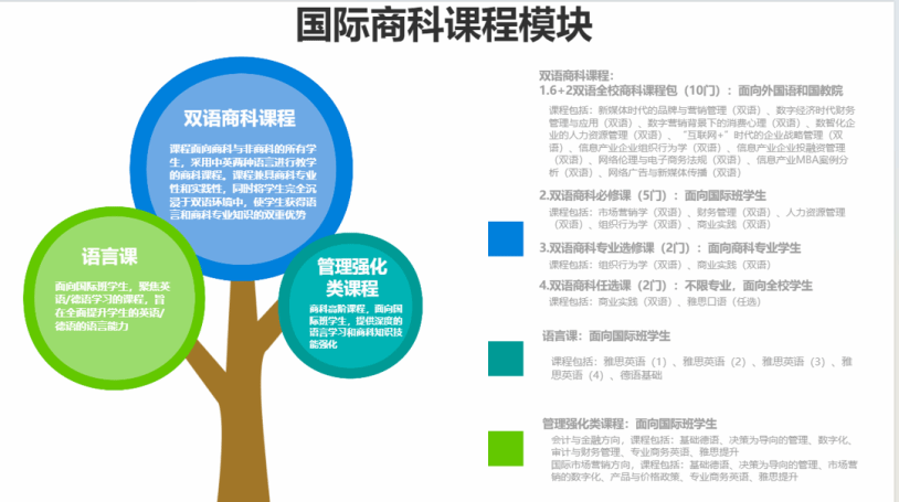 随后,李魁梅副院长从推广目标出发,明确了该课程旨在完善国际化商科课程体系,在积极开展全校性国际化活动之余,以专门的双语商科课程为载体全面提升全校国际化氛围。她进一步分享了三校四区国际商科双语选修课目前的开展现状,包括课程设置、师资力量、学生意愿度等方面,全面展示了课程实施的初步成果与面临的挑战。
