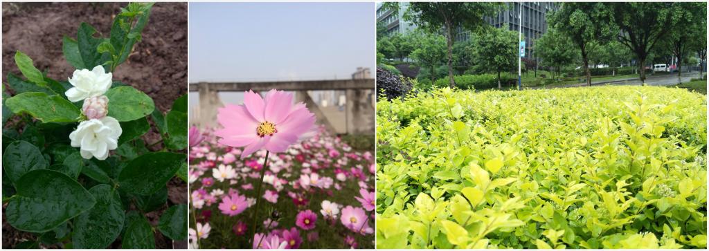 (格桑花、茉莉、薄雪万年草、波斯阙、薄荷等植物在校内等待着参赛选手对其寻找辨认)