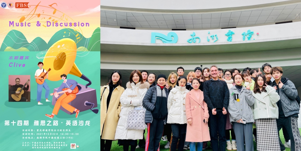 不知不觉来到本学期最后一次即第十四期雅思之路·英语沙龙。以“四位一体双院制”人才培养模式为指导,不断寻求完满和专业的极致融合,中德应用技术学院雅思英语教研室和国际商学院国际商科教研室始终坚持为移通师生搭建既有趣又有料的国际化英语交流平台,近期,在南湖书院中德创意工坊成功开展以“Music & Discussion——‘乐’享不停”为主题的沙龙活动,由外教Clive主持,雅思教师、国际商科教师、外国语学院教师、优秀学生代表参与。