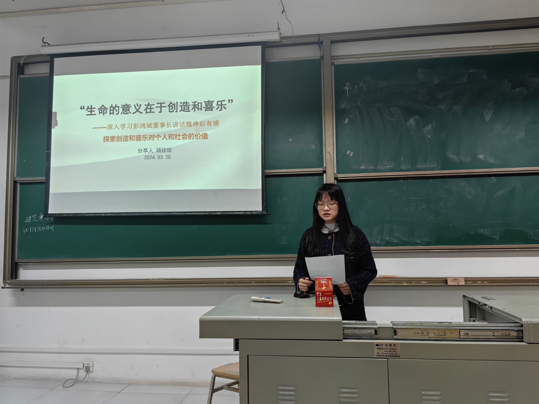 3月20日15点40,马克思主义学院中国近现代史纲教研室迎来了一场别开生面的战略学习心得分享会。此次分享会旨在通过教师介绍学习董事长所著《梦想与实践》一书的心得体会,深化教师们对学校教育理念的认同,激发教师们干事创业的热情,提升教师们为学校发展持续奋斗的信心。分享会上,新进教师李汶静和杨佳欣两位老师分别就《责任与爱》和《生命的意义在于创造和喜乐》两篇文章进行了解读和介绍,引发了在场教师的热烈讨论。