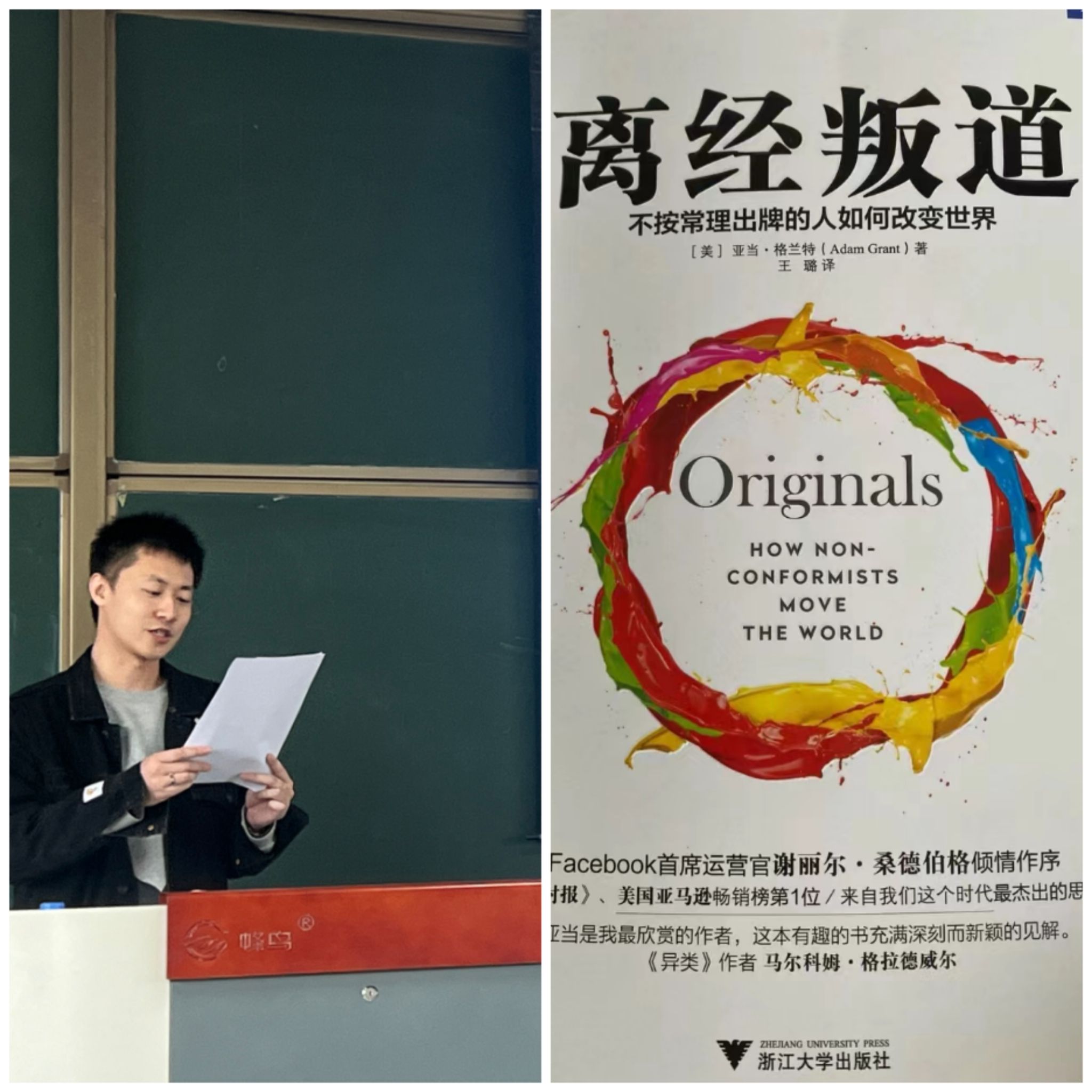 杨志伟老师于3月19日下午在双栀104与2023级工程管理专升本11-12班的同学共读了《离经叛道:不按常理出牌的人如何改变世界》。杨志伟老师分享到:本书围绕“创新”这一核心主题展开。在格兰特看来,创新并不仅仅是关于产生新的想法或发明,而是关于如何勇敢地挑战现有的规则和惯例,以实现真正的变革。他强调,创新往往来自对常规的挑战和反抗,这不仅需要想象力和勇气,还需要承受风险的能力。为了平衡这种风险,创新者需要在采取行动之前充分考虑和评估各种因素,以确保成功的可能性最大化。