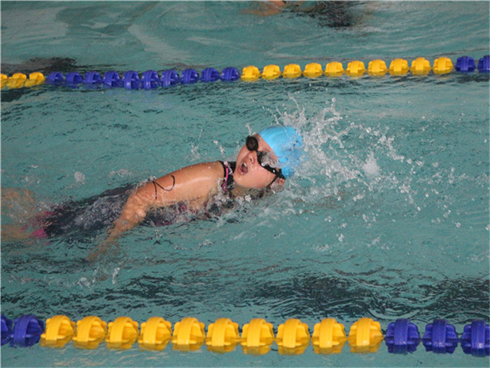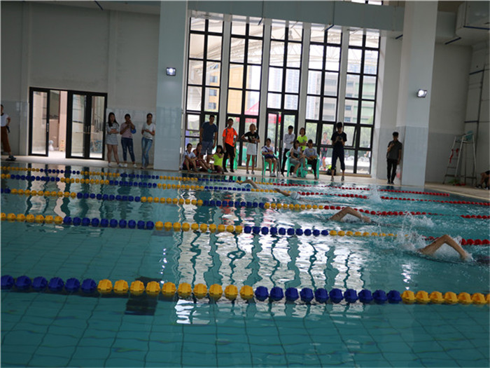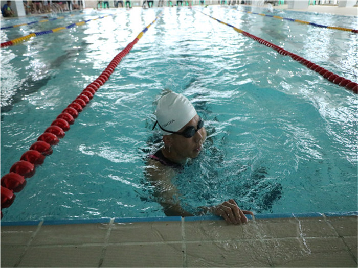 第一项赛程是竞技组个人游泳比赛,还未正式开始,泳池边已呈现一片欢乐沸腾的景象,“铁人”们摩拳擦掌,舒展筋骨,做足赛前热身准备,欲一展水上矫健身手。随着裁判一声令下,25米长的泳道瞬间被激荡起无数浪花。只见选手们个个劈波斩浪,有的如飞鱼般飞速向前,有的则稍显缓慢,但仍坚持不懈。在你追我赶的激烈赛况下······现场呐喊声、欢呼声不断,整场气氛高潮迭起。