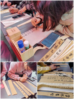 同学们齐聚一堂,泼墨挥毫,共谱华章。他们气定神闲,聚精会神,提笔,落笔......一撇一捺、一横一竖,用心书写每一个汉字,努力展示各自的汉字书写水平和文化素养,脸上无不流露出对书法的热爱,活动现场不时飘来淡淡的墨香,令人心旷神怡。春光如许,书写由古代诗人对惊蛰的赞美之词,恍若穿越时空。