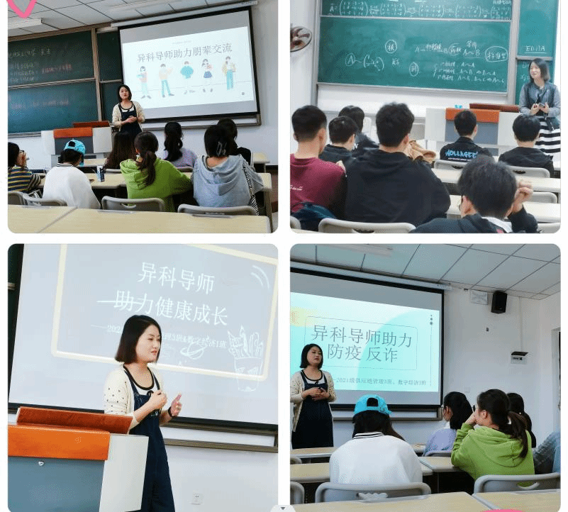 陈老师用“异科导师助力健康成长”“异科导师助力个人发展”“异科导师助力朋辈交流”“异科导师助力大咖阅读”“异科导师助力防疫和反诈”五个维度讲解了异科导师的工作,希望利用自己的专业特长和经验资源帮助同学们更好地度过大学生活。同时,同学们的成长和发展也会推动学校异科导师制的顺利运行,达到学生与学校,学生与导师之间的互助发展。