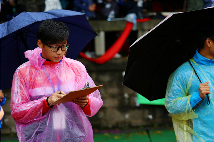 穿着红马褂的他们头发上滴着雨水和汗水,东奔西走只为给需要帮助的人送去温暖;挂着工作牌的他们拿着纸笔,掐着秒表,一脸严肃的记录着成绩;拿着尺子的他们分毫必争,只为守住内心的天平。他们是志愿者、他们是记分员、他们是裁判,他们坚守岗位,坚守原则,不求任何人满意,只要对得起自己。