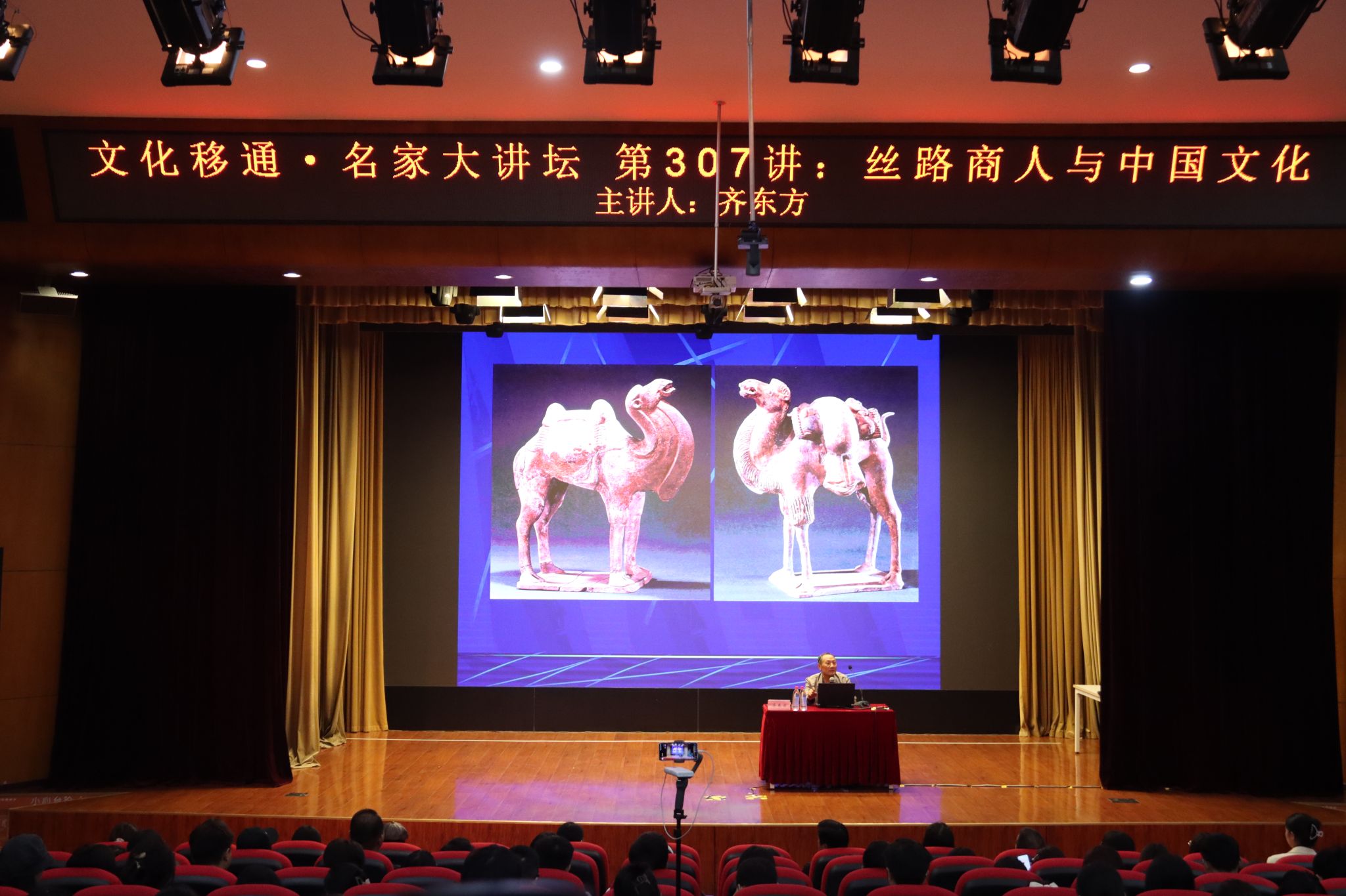 10月9日晚19:00,齐东方教授做客“文化移通——名家大讲坛”,在下里巴人剧场开展了以《丝路商人与中华文化》为题的讲座,齐教授从“考古发现‘揭秘’”“货物的去向”“商人和胡商”以及“商人、商业、商品的影响”四个方面进行分享,为师生们带来了一场难以忘怀的精神盛宴。