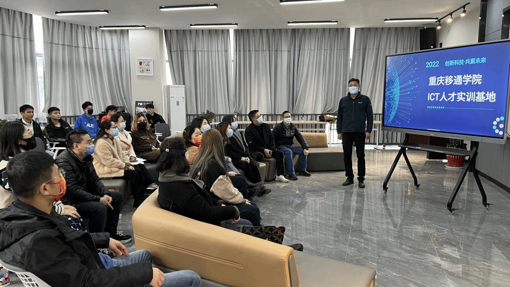 会议伊始,王微昕老师对前期ICT实训基地的建设情况作了简要总结,王老师指出,从2021年9月1日起ICT实训基地迎来第一批学员,一共340余名,进行了5轮培训,主要内容包括数通和WLAN。学生通过培训在“华为中国大学生ICT大赛”2021年实践赛重庆市决赛中前取得傲人成绩,绝大多数获奖同学在秋招之际就已收获深信服、绿盟科技、信锐技术、字节跳动等知名企业的offer。讲到此处,全体教师与学生代表都骄傲地鼓起掌来,学生代表更是发出了羡慕的声音。相信未来的他们会取得更为傲人的成绩,为校争光。