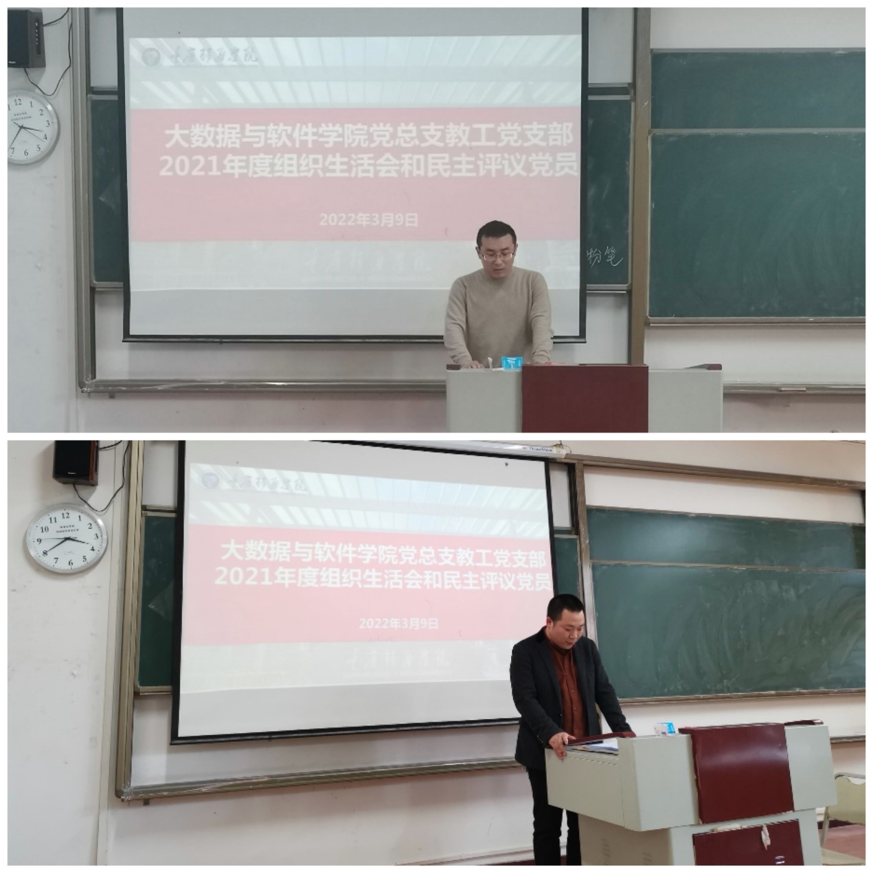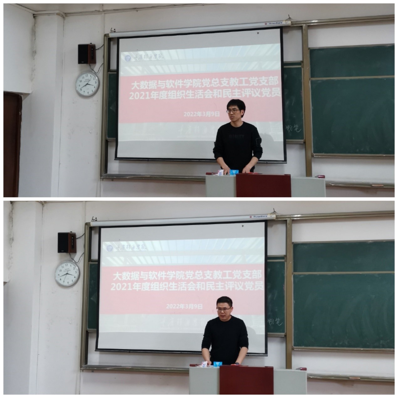 为提高所有党员教师政治思想觉悟,提升老师们工作能力和综合素质,在今后的学习和工作中更加得心应手,大数据与软件学院教工党支部于3月9日下午在7210召开2021年度组织生活会和民主评议党员,会议由支部书记赵凤龙同志主持,全体党员教师参加了会议。