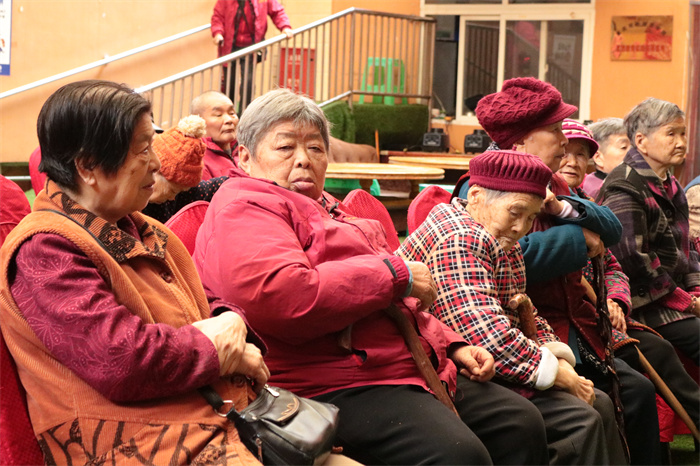 “你笑起来真好看,像春天的花儿一样。”台上的志愿者的歌声悠扬、活力满满,台下的爷爷奶奶看得津津有味,掌声连连、笑声不断。除了合唱以外,志愿者还准备了歌曲串烧、诗朗诵等节目,活动现场热闹非凡。东津沱夕阳红敬老院张奶奶笑着说道“很喜欢这样唱唱跳跳的节目,这些妹儿、崽儿表演得太好了!感觉到志愿者们都非常的热情!”