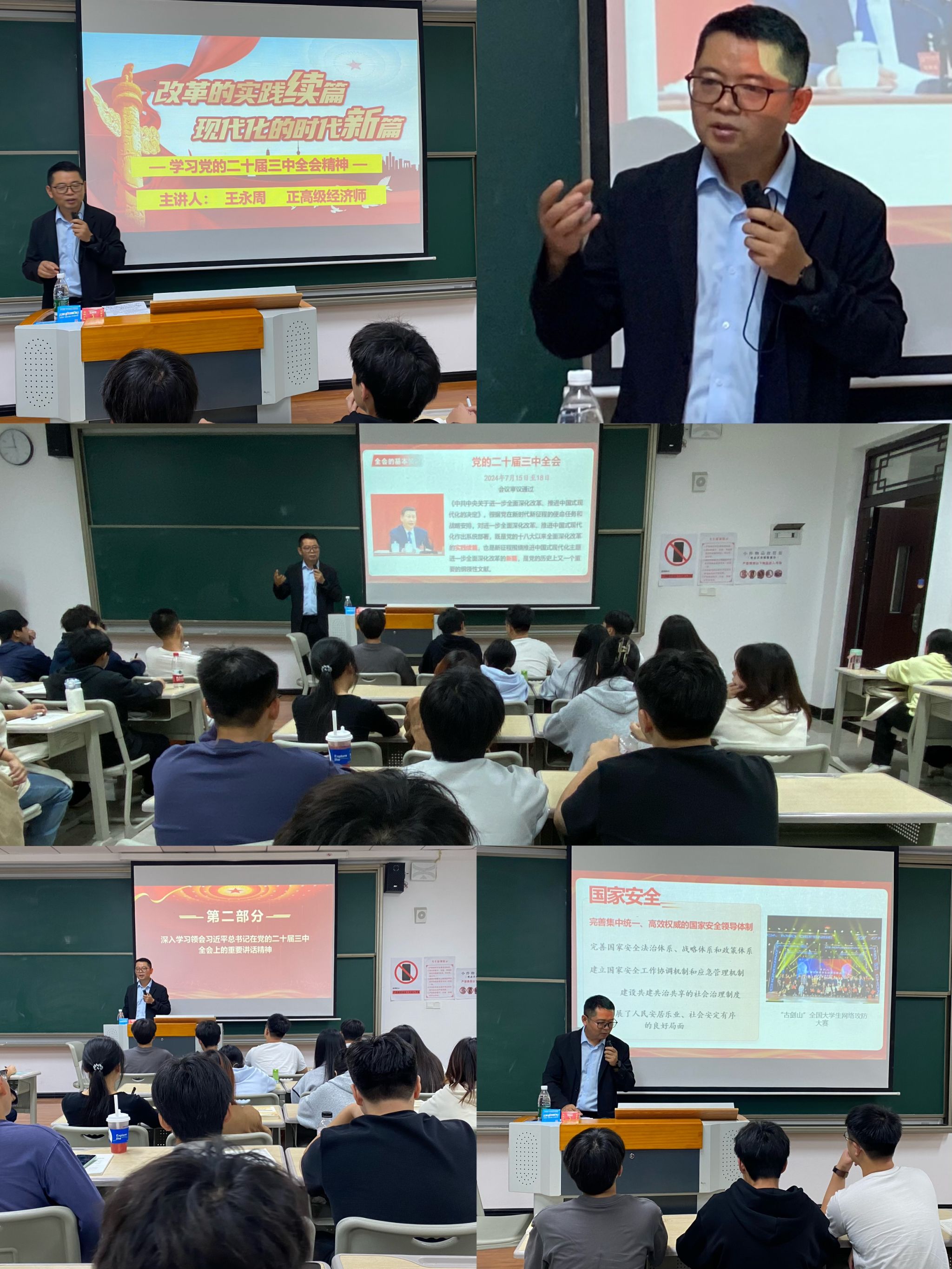 10月17日,副校长王永刚走进2023级人工智能专升本学生的课堂。王永刚副校长从深刻把握和领会党的二十届三中全会的重要意义、党的二十届三中全会的重点任务、扎实推进中国式现代化建设等方面,为同学们进行了精彩授课。王永刚副校长的授课内容丰富、深入浅出,既有理论高度,又有情感温度,使同学们对党的二十届三中全会精神有了更深入的认识和领悟。同学们纷纷表示,要认真学习领会党的二十届三中全会精神,切实把思想和行动统一到党中央决策部署上来,以更加昂扬的斗志、更加务实的作风,积极投身中国式现代化建设伟大实践,为实现中华民族伟大复兴的中国梦贡献自己的力量。