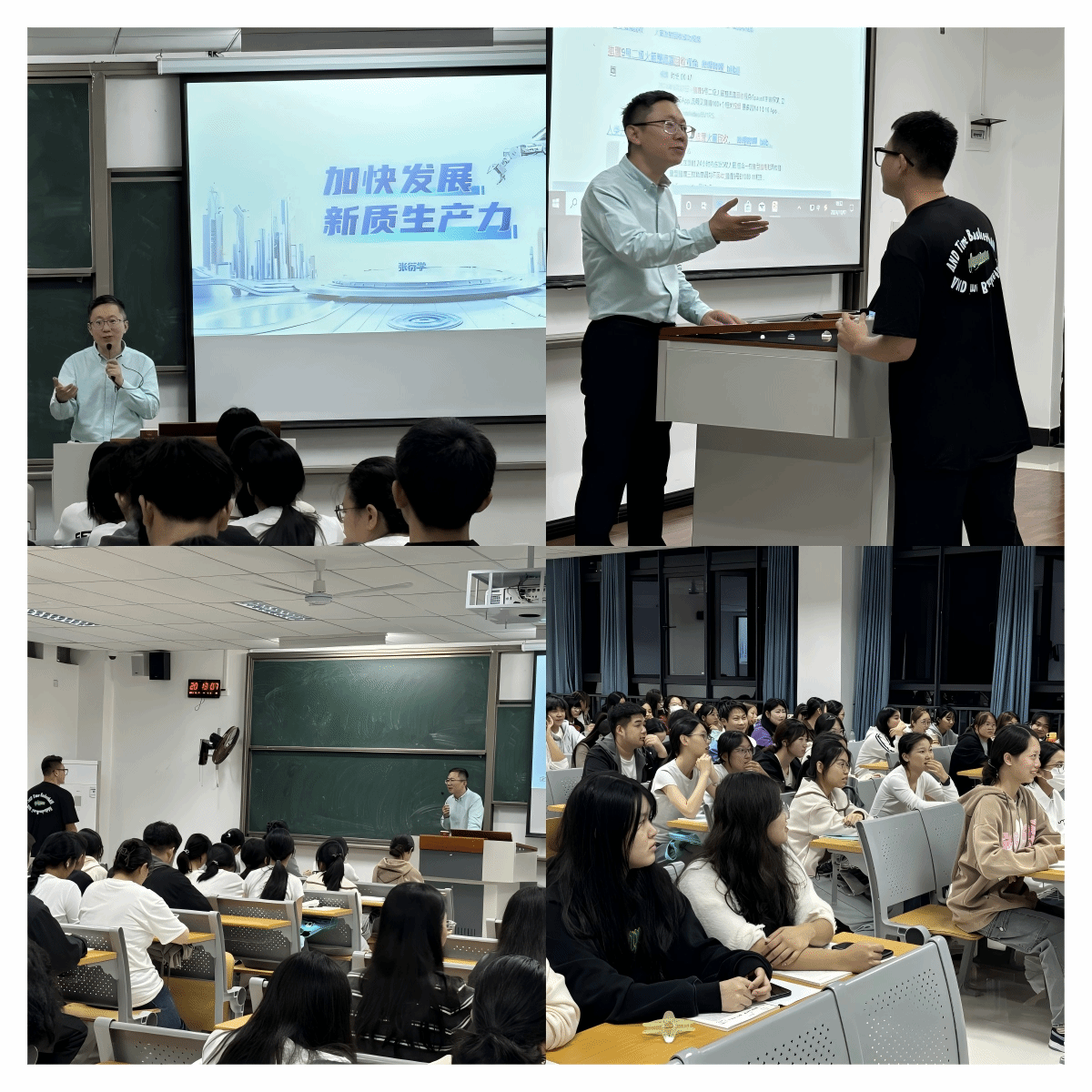 10月17日,副校长张衍学为2024级外国语言文学类英语专业的同学讲授了一堂深刻而富有启发性的思政课。课堂上,张衍学副校长首先对党的二十届三中全会精神进行了深入解读,强调了全会对我国经济社会发展的重要指导意义,重点阐述了新质生产力概念及其重要性。在讲解过程中,张衍学副校长结合当前国内外经济形势和政策环境,分析了新质生产力在我国发展中的重要性和紧迫性。此外,张校长结合学校实际,深入分析了新质生产力在教育领域的具体体现和实践路径。他鼓励学生们要敢于挑战传统思维定式,勇于尝试新方法、新技术,不断拓宽知识领域和视野。