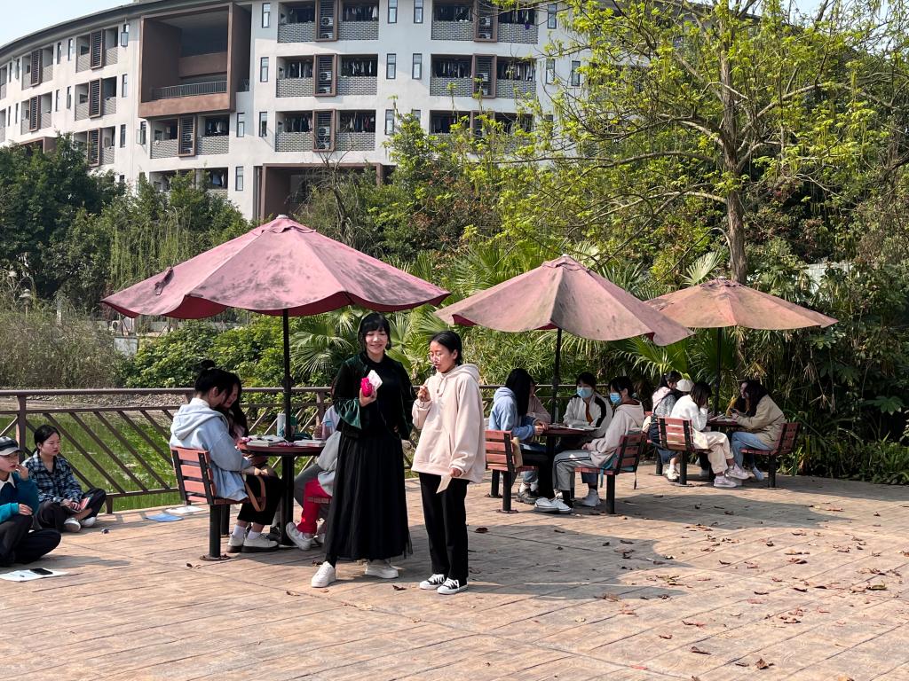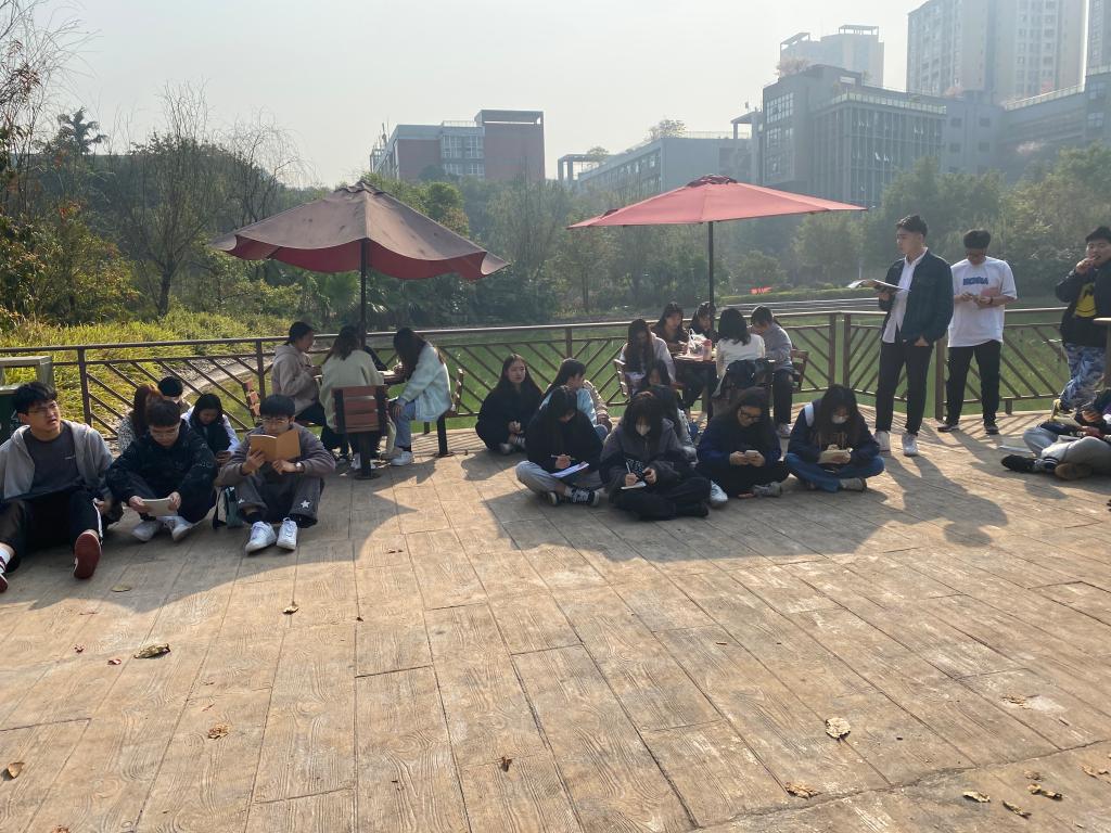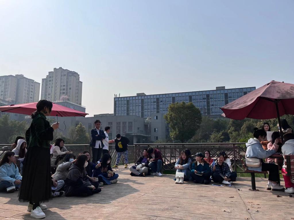 3月9日的《经典演讲》课前,同学们接到通知,要在南湖书院外的湖边上户外课,大家雀跃的心情像春风一样浩荡。春水碧于天,周围杂花生树,同学们席地而坐,开始了这天的课程。