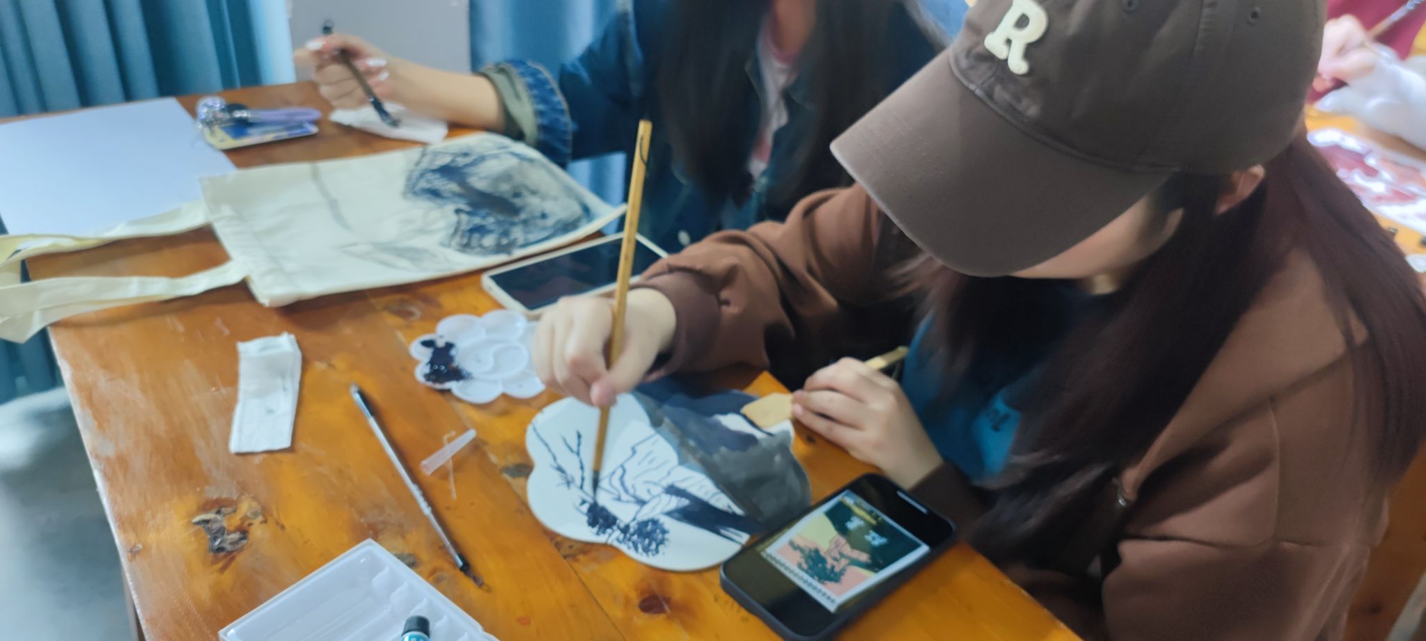接着徐梦笛老师组织学生进行作品创作,引导学生使用预先准备的材料和工具,根据对红岩文化的学习和了解,一是制作以红岩为主题的手绘水墨作品,包括含有红岩精神绘画的帆布袋以及团扇等;二是手工制作红色文化的剪纸,同学们技术娴熟,剪刀在手中不停翻飞,不一会儿一幅幅生动的作品就跃然眼前。