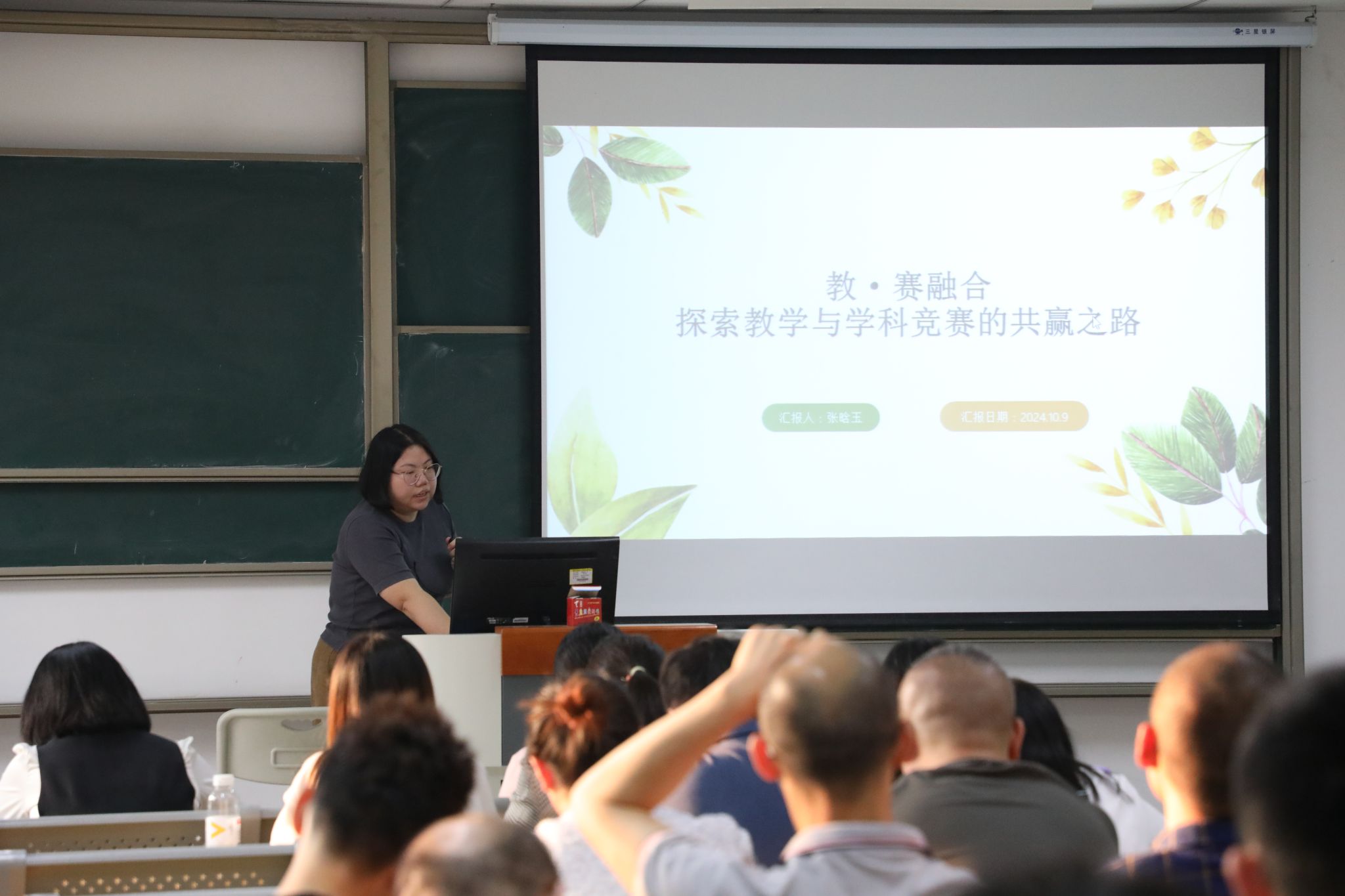 接下来,张晗玉老师围绕“教·赛融合——探索教学与学科竞赛的共赢之路”进行了分享。张老师以自身在课程教学和竞赛指导中的实践经验为基础,从课堂创新、课赛融合和竞赛风采三个方面进行了深入的交流。