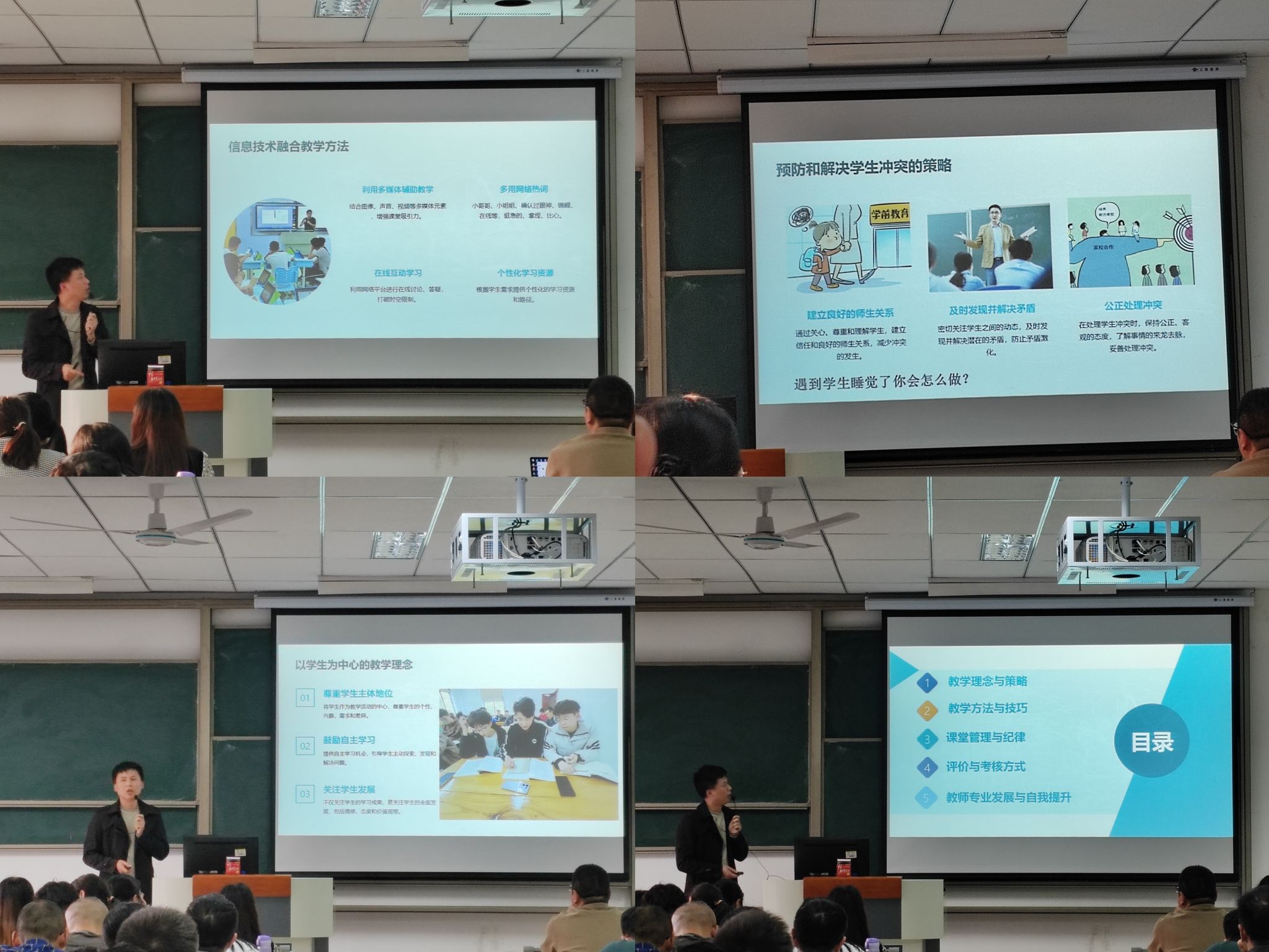 活动伊始,关正伟老师首先做了关于“教学实战技巧”的分享。关老师结合自身多年的教学经验,从教学理念与策略、教学方法与技巧、课堂管理与纪律、评价与考核方式、教师专业发展与自我提升五个方面展开了深入探讨。关老师不仅从理论上阐述了教学的核心理念,还通过生动形象的教学案例,展示了如何将这些理念付诸实践。