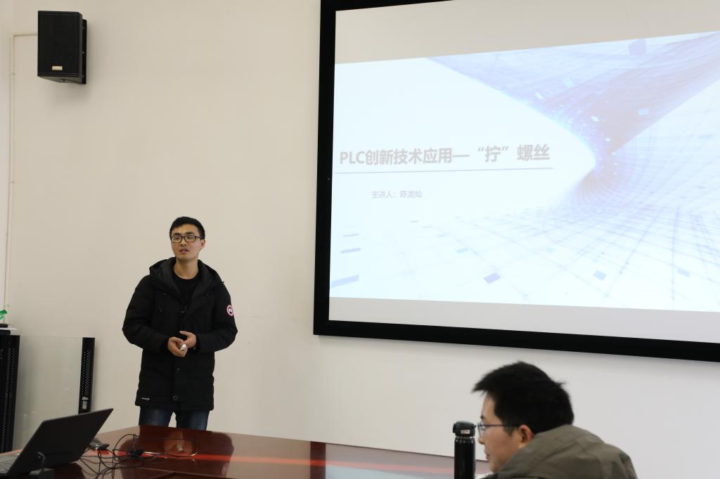 陈龙灿老师以《PLC创新技术与应用》课程中的“拧螺丝”为题讲述硬件系统的设计方法。拧螺丝和PLC技术之间有什么联系呢?老师们的兴趣一下子就被调动起来了。陈老师以工厂、企业最常见的一道工序——拧螺丝作为切入点,分析了这个工序的特点、容易出现的问题。该如何运用PLC技术解决这一问题,通过抽丝剥茧、逐渐深入的方式引出如何用PLC技术设计一个自动拧螺丝系统,讲解了伺服系统、外部接线、控制模式及参数设置等教学内容。并融入课程思政案例——拧螺丝荣获“劳动模范”称号,培养学生的工匠精神。陈龙灿老师讲解深入浅出,逻辑思维严密,课件精美,设计合理,起到了很好地示范引领作用。