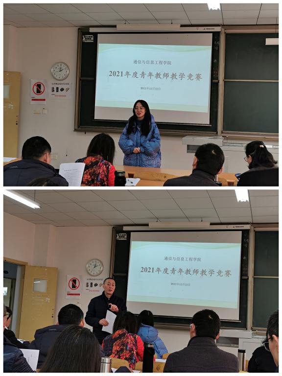 为了进一步推进教育教学改革,促进青年教师业务水平与教学能力的提高,并为青年教师搭建一个展示自我、锻炼自我、互相交流学习的平台,12月22日下午2点通信与信息工程学院在4305教室进行了“2021年度青年教师教学竞赛”。本次竞赛由唐林建副院长主持,胡庆老师、蒋青老师、易红薇老师等多位教学经验丰富的资深教授担任竞赛评委,来自各教研室的共8位青年教师参加,部分师生观摩了比赛。