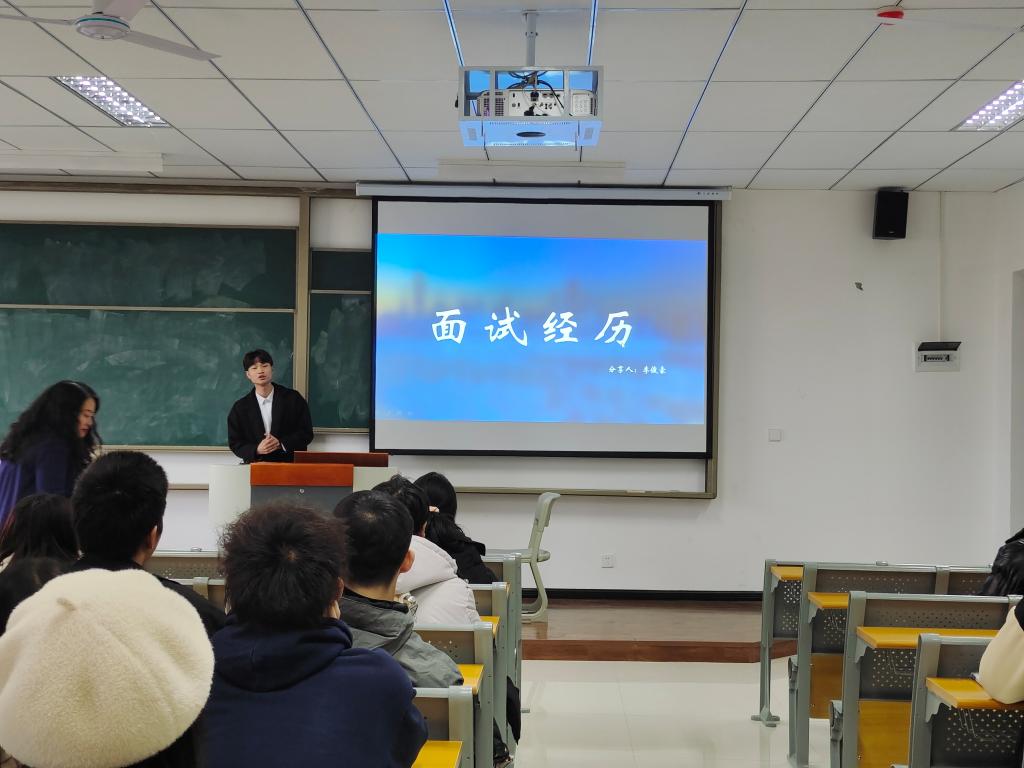 活动经验丰富的魏威同学从个人成长、学习心得、岗位选择、面试技巧等方面与学弟学妹们进行分享交流。他提出要清楚本专业有哪些合适的岗位,通过查看大厂对岗位的招聘要求,开展有针对性的学习,在面试中要重点介绍自己的擅长的优势部分。