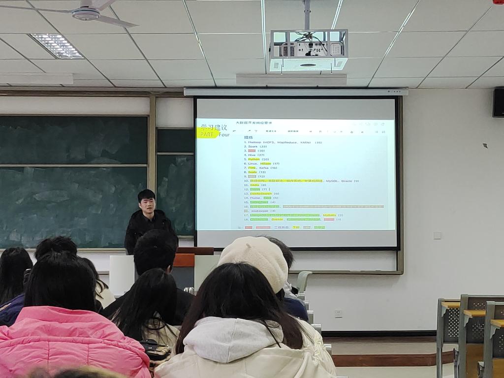 12月22日下午数据科学与大数据技术专业同大数据教研室,针对2019级本专业大三学于对于未来缺乏方向,就业目标不清晰的情况,特邀请2018级大数据专业就业较好的6名优秀学生代表在第九教学楼9110教室开展“老带新、传帮带、学经验”的主题分享活动。