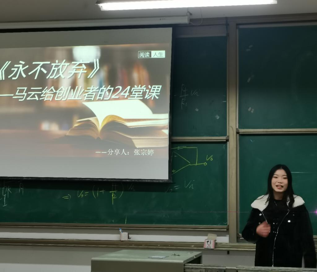 来自2020级的两位同学分别就《永不放弃——马云给创业者的24堂课》《腾讯传——一个互联网公司的发展》两本书分享了马云、马化腾建立商业帝国的故事。同学们的分享让在场老师们看到了大咖的创业精神、创业心态、创业思维等多方面的综合素质,让人看到一个人有知识、有见识、有胆识最终才会取得成功。两位同学的分享赢得了现场的阵阵掌声,活动在不知不觉中落下帷幕。