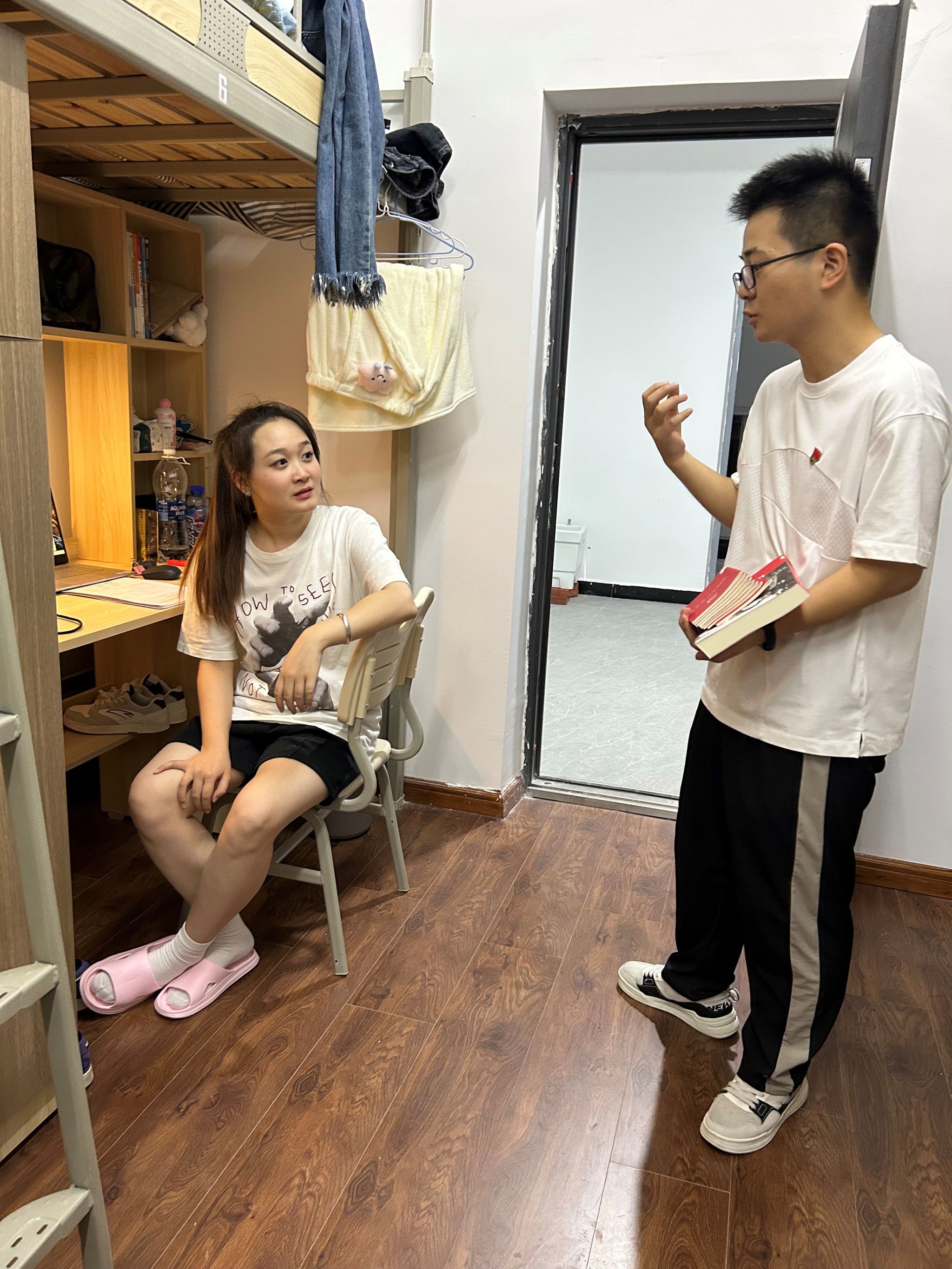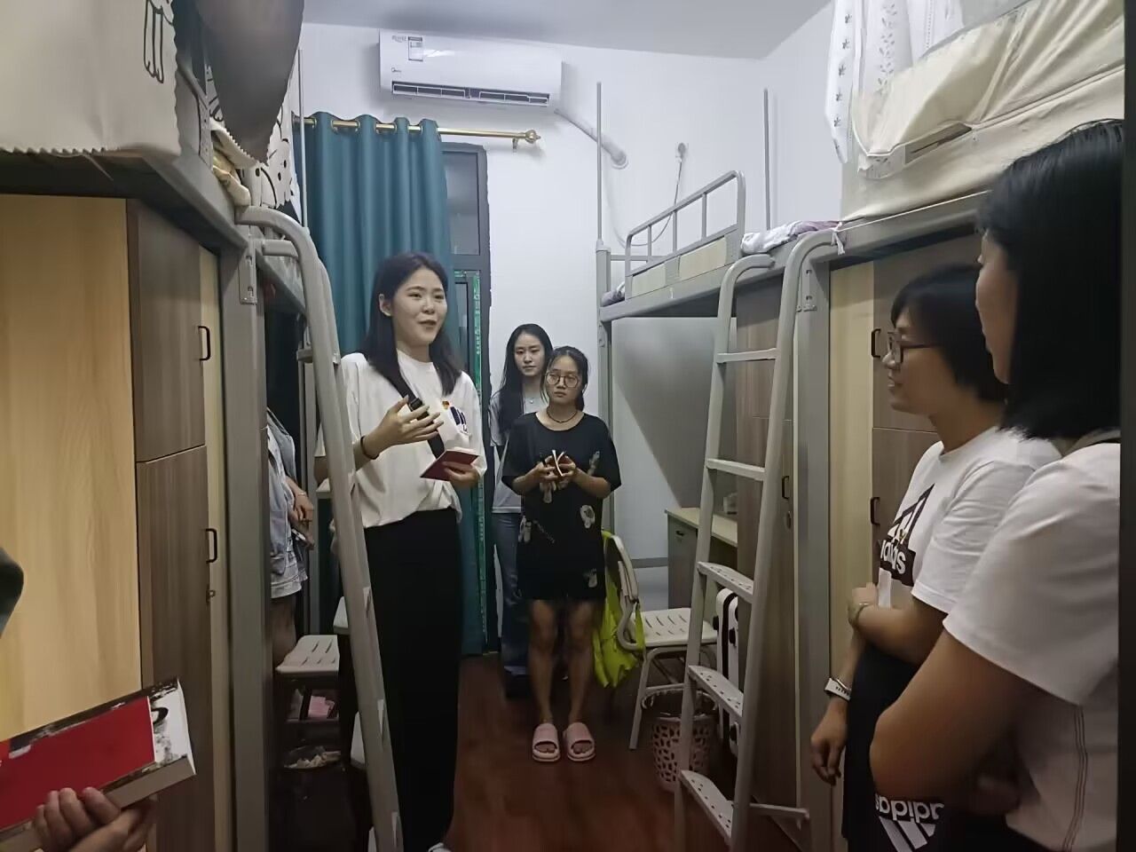 炎炎夏日已过,迎来九月秋风送爽。为持续抓好主题教育,强化为师生办好事、办实事、解难题,深入关怀新生,帮助新生快速转变角色,适应大学生活,发挥党员示范引领作用。2023年9月6日晚上九点淬炼商学院学生党支部师生党员共同前往书院走进新生入学后的生活,并从入党、反诈、就业等方面展开宣讲。