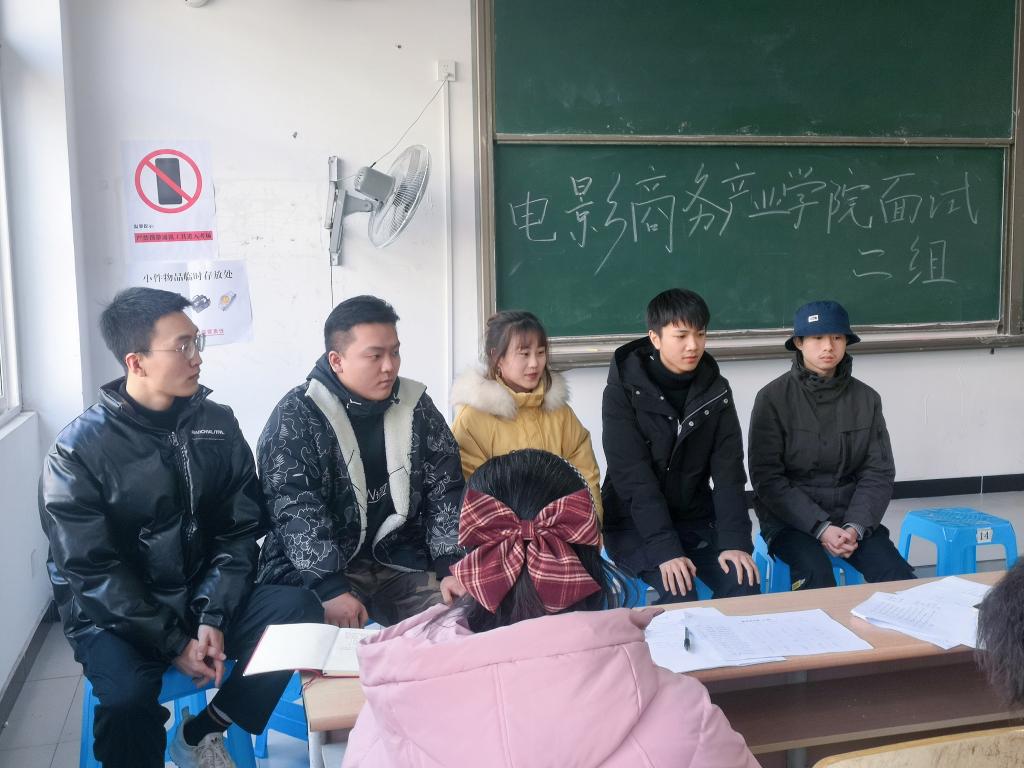 12月21日中午在第五教学楼四楼教室举行了第一期“电影商务产业学院精英班”学员的面试选拔工作。面试共分为两组,面试流程分为自我介绍+无领导小组讨论,分别邀请了电影商务产业学院精英班项目导师、优秀授课教师及万画影城负责人担任评审工作。