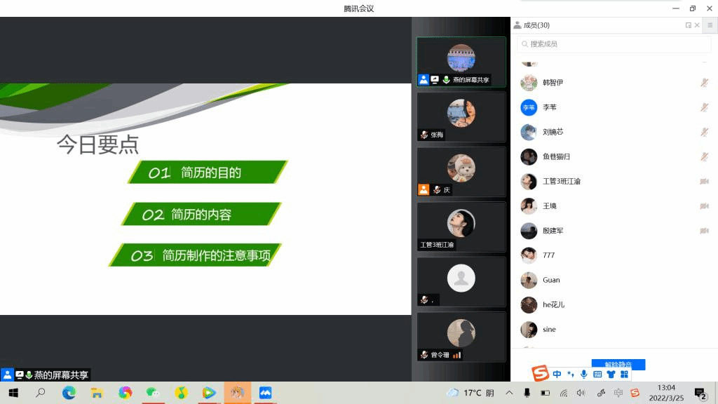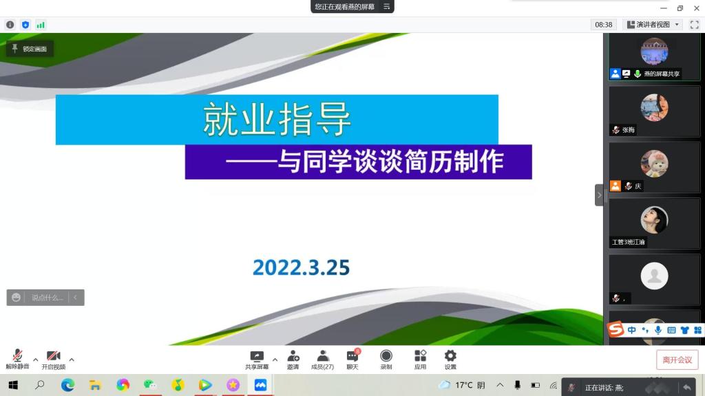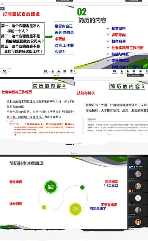 在与学生的沟通中,陈明燕老师了解到学生关注的焦点大多在就业。为了提高学生的就业能力,帮助其为日后就业做出更加充分的准备,3月25日下午,陈明燕老师与淬炼商学院·国际商学院的同学们通过腾讯会议开展“简历制作技巧培训”专题讲座。陈老师细致地为同学们讲解了简历的制作以及面试流程等同学们在就业过程中会遇到的一系列问题。