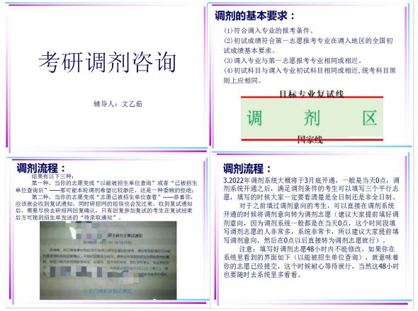 文乙茹老师提醒各位同学提前联系导师是关键的一步。联系导师可以获得很多信息,比如学校调剂情况,学校招收人数以及分数段,录取的可能性,为此会大大增加复试机会,提前占领先机。一旦导师和你联系,选择要你,或者愿意接收你,那么进入这个学校基本上是没问题的。最后,还需多了解信息,可通过小木虫、考研帮、校园官网、研招网等渠道扩大自身的信息储备量。