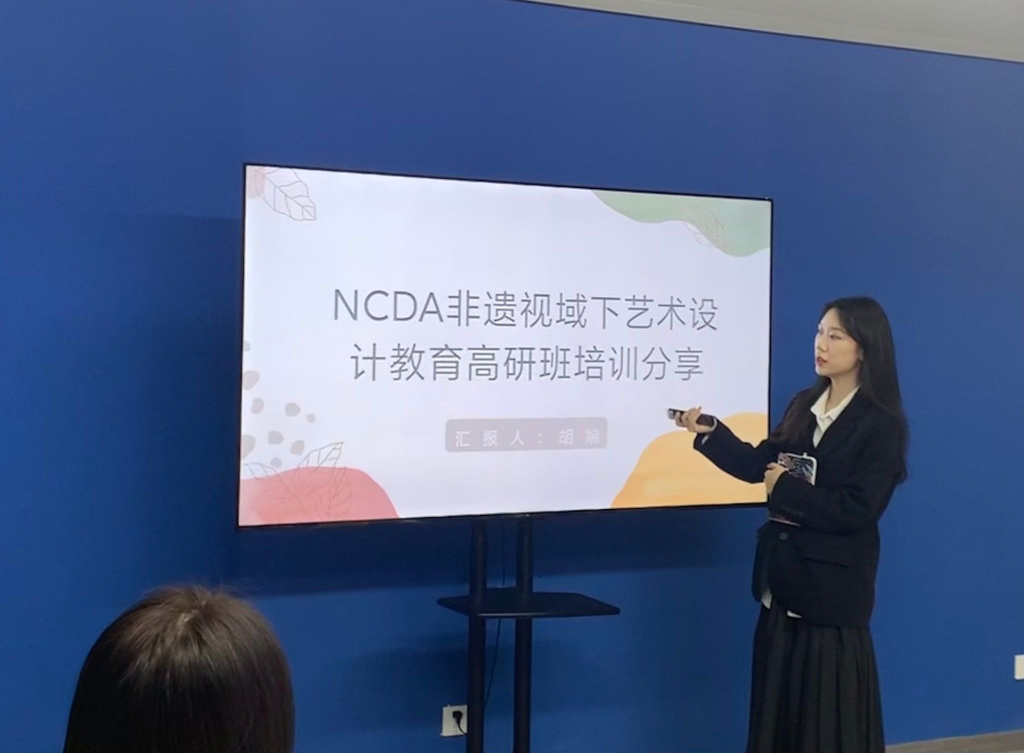 胡婉老师重点交流了高研班培训的主要内容,首先是非遗与设计的跨界融合,将非遗文化与设计教育相结合,通过对非遗元素的挖掘和创新运用,可以为老师提供独特的设计灵感来源,培养其独立思考和创新设计的能力。其次在培训中采用实践和理论的结合,涵盖非遗知识普及、设计理论与方法、实际案例分析等多个方面,在理论学习的基础上,考察实际的非遗设计项目,提高实践能力。