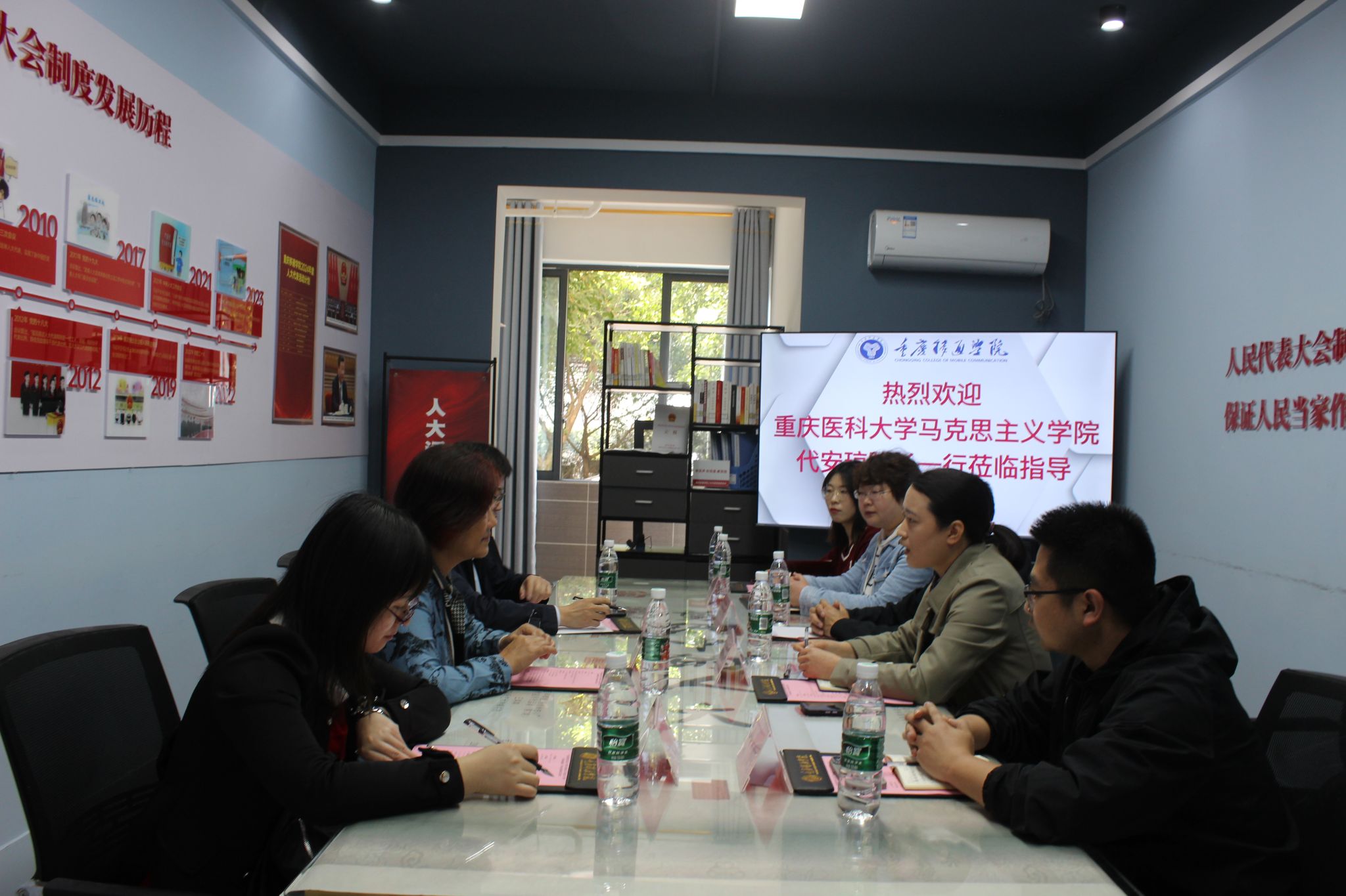 交流互鉴寻经验 携手同心谋发展。为进一步贯彻落实习近平总书记关于“大思政课”的重要指示批示精神,加强学习借鉴重庆市重点马克思主义学院先进建设经验,促进我校马克思主义学院高质量发展,助力我校思政课建设再上新台阶。3月28日上午10点,我校马克思主义学院邓燕院长携合川校区各教研室主任、教学团队带头人与重庆医科大学马克思主义学院代安琼院长一行开展交流座谈,活动由我校马克思主义学院邓燕院长主持。