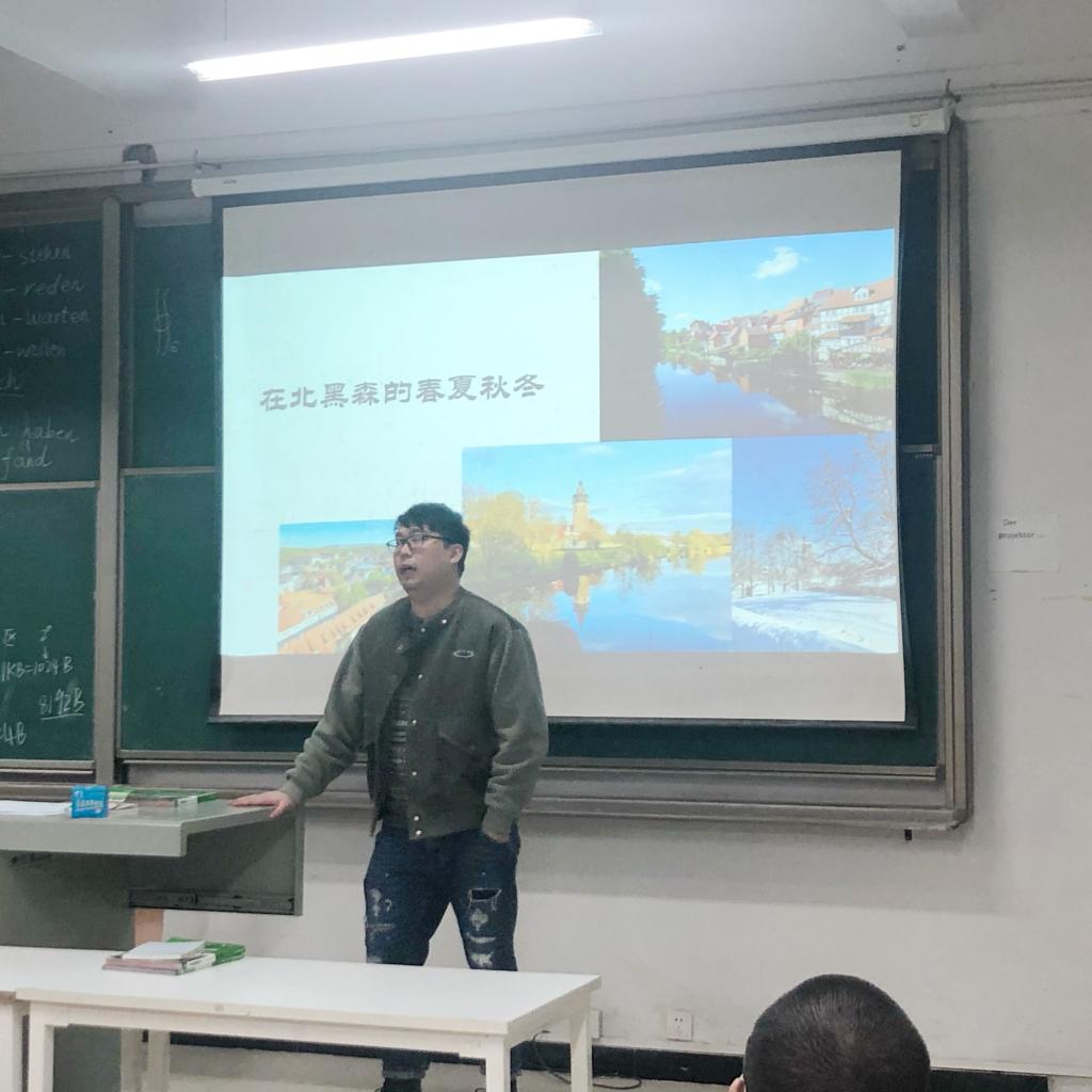 为了更好地解答同学们心中的疑问,李老师受邀进课堂,就自己的留德经历从四个方面为大家答疑解惑。首先,针对同学们比较关心的留学费用,李老师谈到,德国的物价较其他欧洲国家而言较低,在德国的生活成本不高。成绩较好的学生可以申请奖学金,经济相对来说比较困难的学生也可以通过勤工俭学来补贴自己的生活。说到这,李老师讲述了自己在德国“送外卖”的经历,同学们听得津津有味。其次,对于从留学到毕业要经历的一些流程,李老师指出,到德国之后要先上语言班,通过语言班考试之后则进入预科阶段的学习。如果在国内取得A2、B1或者更高等级的语言证书,那么在预科班的学习会更加顺利,从而更快进入德国大学进行专业阶段的学习。因此,李老师建议同学们一定要在国内学好德语,掌握这门最具活力的欧洲语言。接着,对于同学们关心的毕业升学问题,李老师说到,如果在德国顺利毕业,凭借较好的成绩可以在德国轻松申请TU9大学的研究生,国内也需要大量的留德人才。最后,关于在德留学有什么“耍事”?李老师介绍说,旅游和购物都是不错的选择,比如德国的柏林,慕尼黑,科隆等著名的景点城市,与德国相邻的9个欧洲国家,也都是绝佳的旅游出发地。此外,德国的啤酒,巧克力等很多东西都物美价廉,在低汇率下尽情尝遍德国美食佳饮何不快哉?