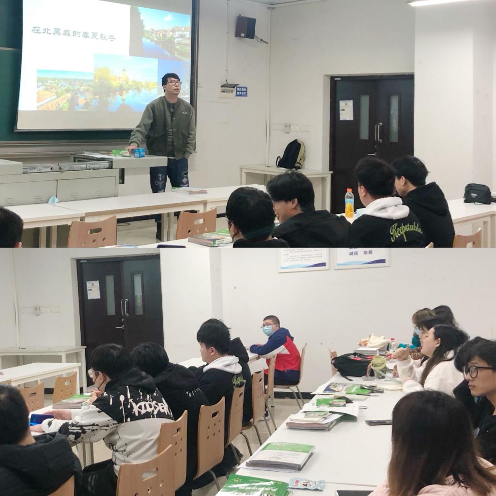 近日,中德学院综合办公室的李科岱老师受邀走进2020级通信技术国际1班的德语课堂,为同学们分享留学德国北黑森应用技术大学的那些事儿。李老师是中德学院2014级通信技术专业优秀毕业生,2021年从北黑森毕业回国。