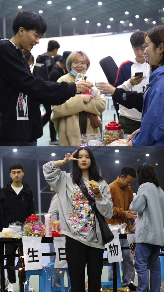 “我爱记歌词”和“歌曲接龙”环节也受到了同学们的热烈支持,歌还没听完全场就都是举起的双手,这才让大家发现,原来观众里也卧虎藏龙。现场十月过生日的小伙伴们也有口福了,花果书院为大家准备了小蛋糕庆祝他们新的一岁。