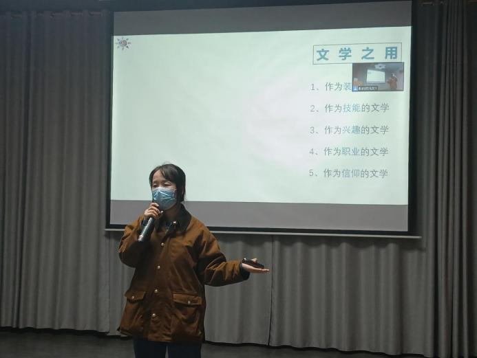本次讲座以“一个初学者的创作之路”为主题,吴霞霞老师为大家倾情讲解一些有名的文学作家的个性,将大家喜爱的各位知名作家一一举例,如托尔斯泰,莫言,卡夫卡,荷马等,极大地吸引同学们的兴趣。