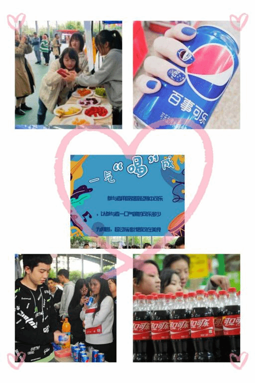 伴随音乐的响起,我们的活动正式开始,参与者对游戏进行一一打卡,从而享受精美的美食,游戏的名字叫做一气“喝”成,同学们通过用吸管一口气吸可乐罐的容量达到三分之二即算通关,通过游戏后即可进行拍照打卡然后享受精心准备的饮品。在喝可乐的过程中,同学们会感受可乐带来的舌尖冲击进而感受音乐带来的张力。参与人员十分的热情,排起了长长的队伍。