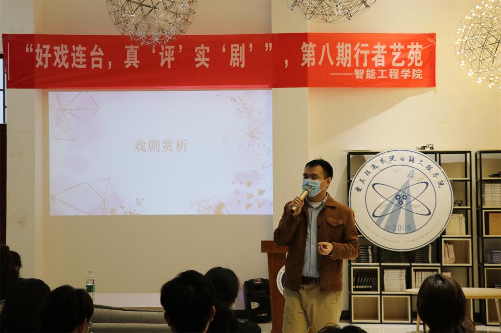 为了让同学们能够充分地了解戏剧、学会欣赏戏剧,智能工程学院执行器艺术团于4月15日下午2点在荷悦109活动室举办了“好戏连台,真‘评’实‘剧’”智能工程学院第八期行者艺苑,莅临本次活动的有创意写作中心李言老师,艺术板块指导老师胡慧敏老师。