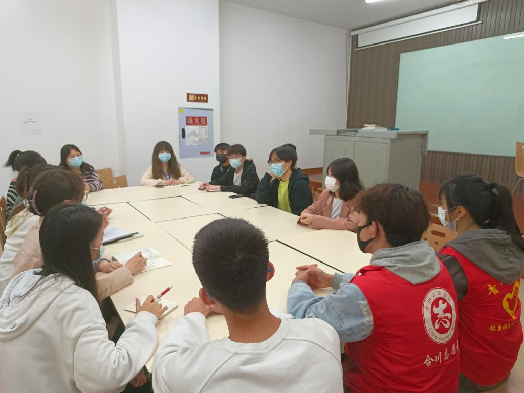 “鱼城雄魂”巴渝文化宣传志愿服务专项支队学生干部钟子强和大数据与计算机科学学院青年志愿者协会学生干部李艳强分别向大家讲解了各自支队的服务领域及相关工作情况。大数据与计算机科学学院青年志愿者协会学生干部李艳强向参会者介绍他们支队的特色工作:定期走进养老院,关爱孤寡老人;踏入幼儿园,爱护留守儿童。双方都提到,受疫情影响,“走出去”活动有所减少,但是各支队队员渴望投身于志愿服务当中的热情不减;同时,双方达成共识,疫情结束后,双方愿意进行支队合作,对外宣传钓鱼城历史文化,感受钓鱼城历史文化的魅力,把志愿精神融入实际工作,开展特色专项服务,提高志愿服务水平。