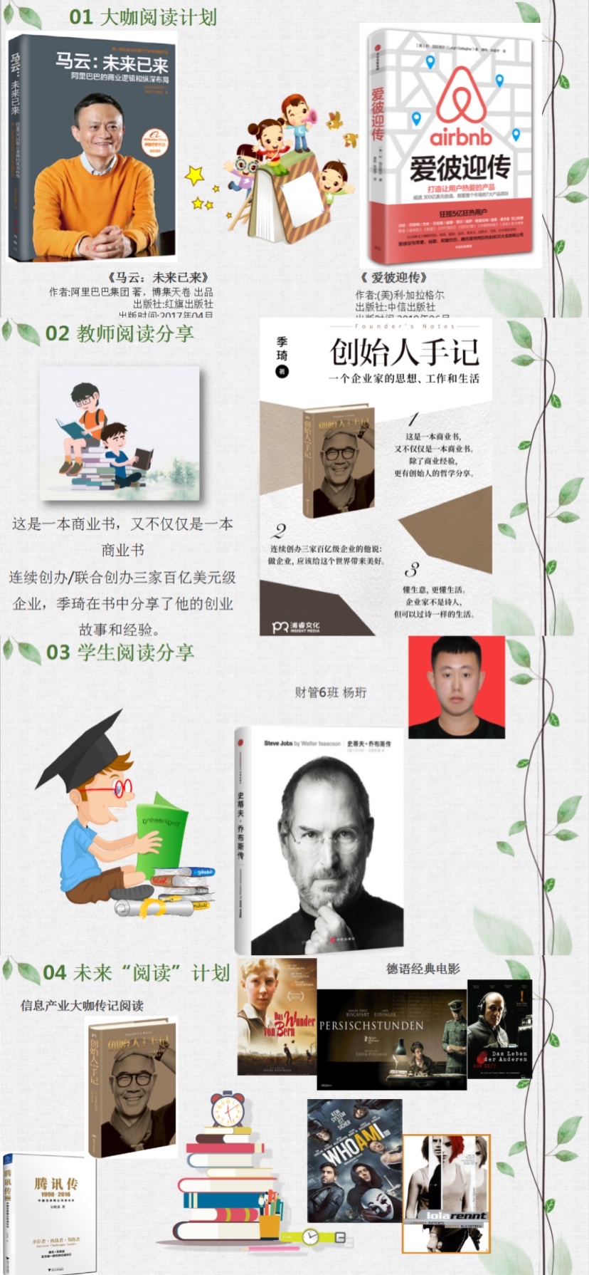 为了体现异科导师的作用,在接下来的阅读计划中,除了进行大咖传记阅读之外,朱老师还通过网盘分享给大家5部经典的德语电影,希望同学们能够选取其中的一到两部进行观看,并能就观影心得进行交流。