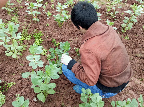 经过新年春雨的洗礼,中德果园里又长出了许许多多的杂草,整片果园一片绿色,让人们眼前一亮,但同学们必须把这些杂草都拔掉,它们吸收了本该给果树的养分。同学们有的蹲着、有的弓着腰、有的三个一起两个一起相互合作,鞋子、裤腿与手上粘满了泥土,头发被雨水侵湿,但同学们也不在意,继续着她们的任务。雨还一如既往的淅淅沥沥的下,尽管发丝沾满了小水珠,同学们依旧在田间忙碌着,乐此不疲。