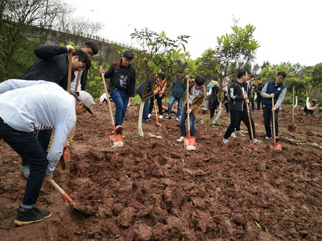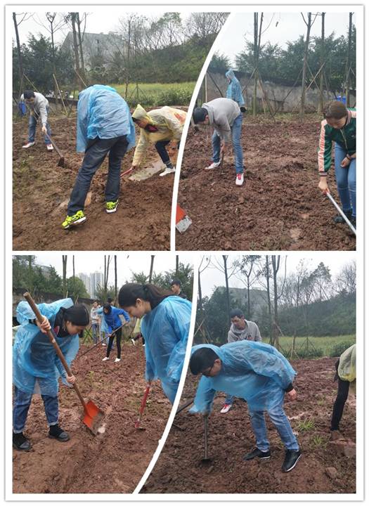 三月春日,大地复苏,万物生机勃勃,同时也是农民插秧时候到了。为让同学们体验到春季农民们的辛苦,也为让学校耕地在新的一年换发新的生机,计算机科学系组织以班级为单位,到中德果园进行松土、拔草等工作。2017年3月23日至24日的中午12:15,计科农耕队的人员齐聚中德果园。虽然下着小雨,但也浇不灭同学们劳动的热情。同学们披着雨衣在地里劳动着。男生负责挖地,搬石头,女生负责除草,安排好后,同学们去拿了锄头等工具便迫不及待地行动了。
