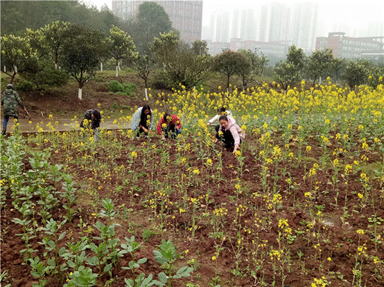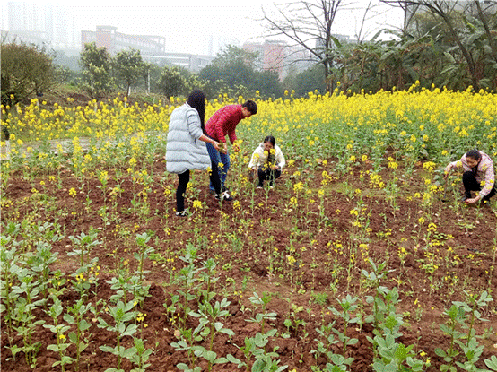足有一人高的油菜花杆撑起连绵一幅金黄画卷,沿着池塘的一圈花叶繁密的胡豆、排排列列身姿挺立的蒜苗,开出一点一点小白花的豌豆苗……一切都是新生的样子,一切也都是充满希望的样子,让人身在城市却感觉置身清新乡野。这些都是我们学校各个系的农耕协会在上一个学年辛勤劳作的共同成果,让身为农耕协会一员的我们感受到了意外的成就和惊喜。