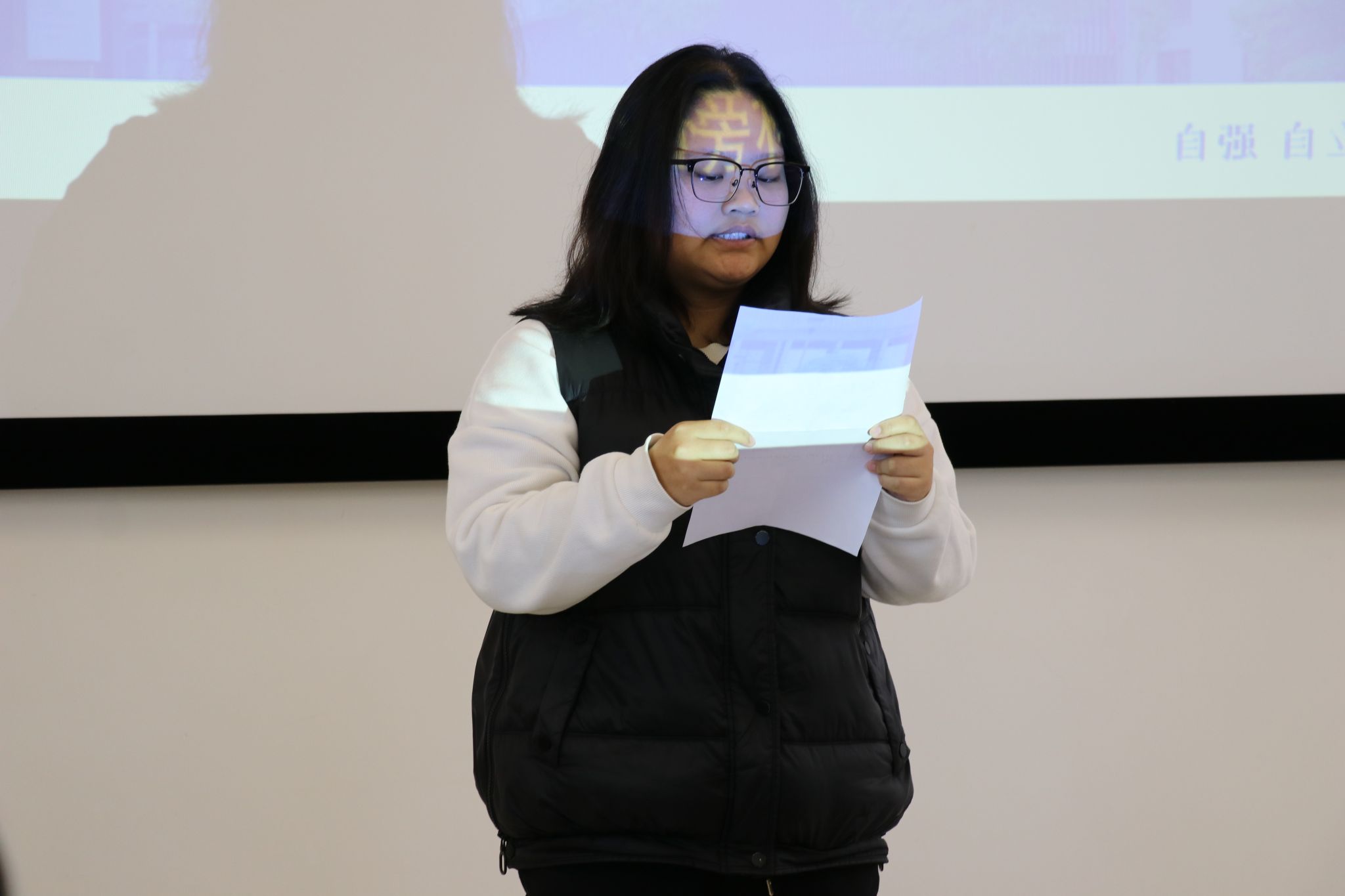 大会最后,学院国奖获得者、学生优秀代表刘家佳同学,根据自身经历给同学们提供宝贵的学习经验,激励同学们勤奋学习,积极进取,在学习中不断充实自我、挑战自我。她的发言引起了同学们的共鸣,暗暗下定决心,汲取榜样力量,努力提升自己。刘家佳同学的发言,点燃了在场同学的热情,也为营造良好的学风贡献了力量。