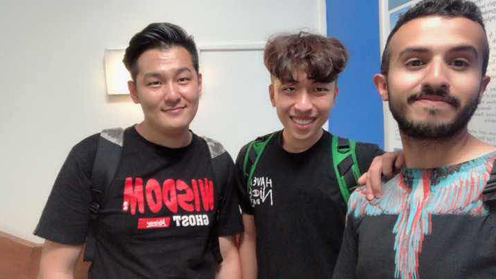 图一:杜嘉伦在英国斯旺西⼤学与室友的合影