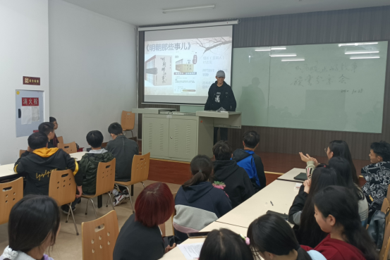 第四组付达友同学以书籍《明朝那些事儿》为基础,为大家讲述了北京保卫战。通过对这场战役的背景以及双方实力的对比,展现古代人民在打仗方面卓越的战略战术的智慧。同时也为大家推荐了这本书的趣味性。