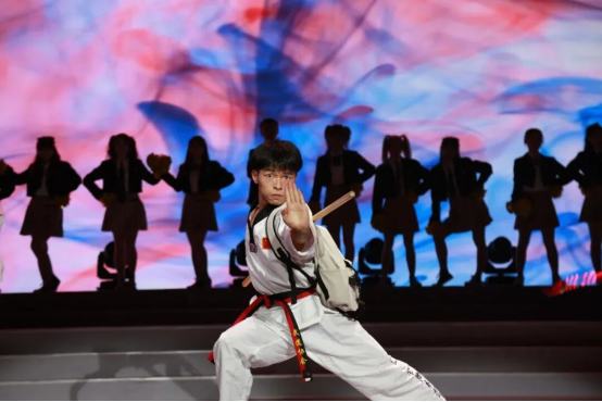 武道协会训练有素整齐划一,点棍、撩棍、扫棍、劈棍……刚柔相济,轻盈闪亮的棍子在空中“划”出一道道优美的弧线。身前、身后......两条棍子在身体周围穿梭。台下观众看入了迷,与选手们已融为一体,紧张不已。正应了那句:“观者如山色沮丧,天地为之久低昂。”行云流水的动作,无一不在淋漓尽致地表现着中华优秀传统文化“中华武术”的魅力。