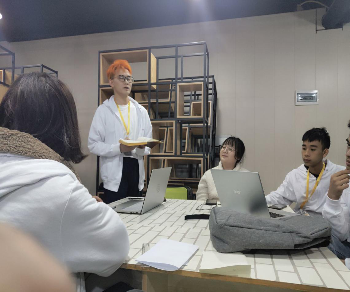 10月28日19:00,第七期先锋班晚自习在爱莲书院负一楼孵化基地如期举行,课程主要内容为项目计划书的撰写和项目路演讲解。辅导员车丽芳老师以及第七期创先锋班全体成员参与此次课程。