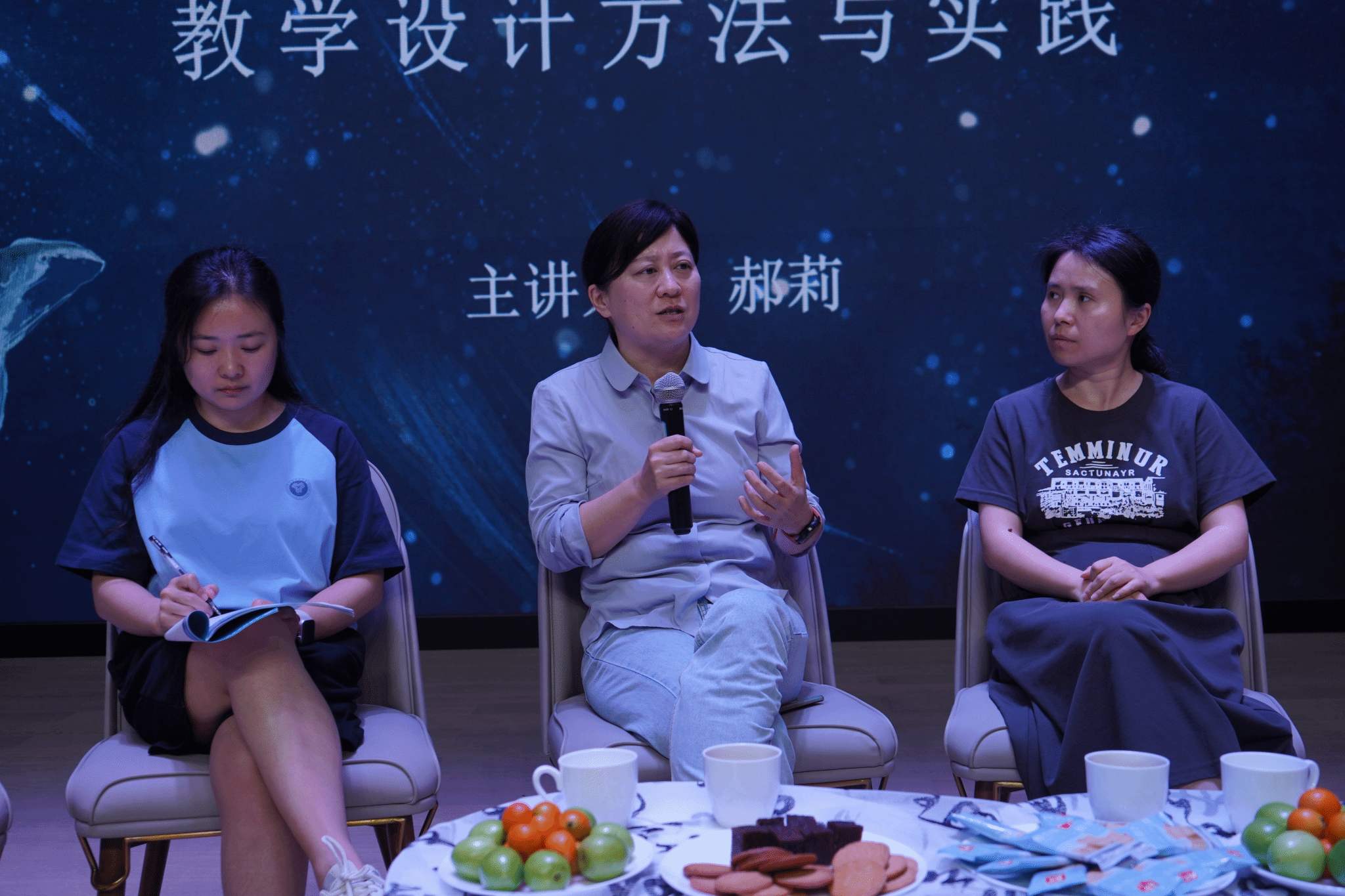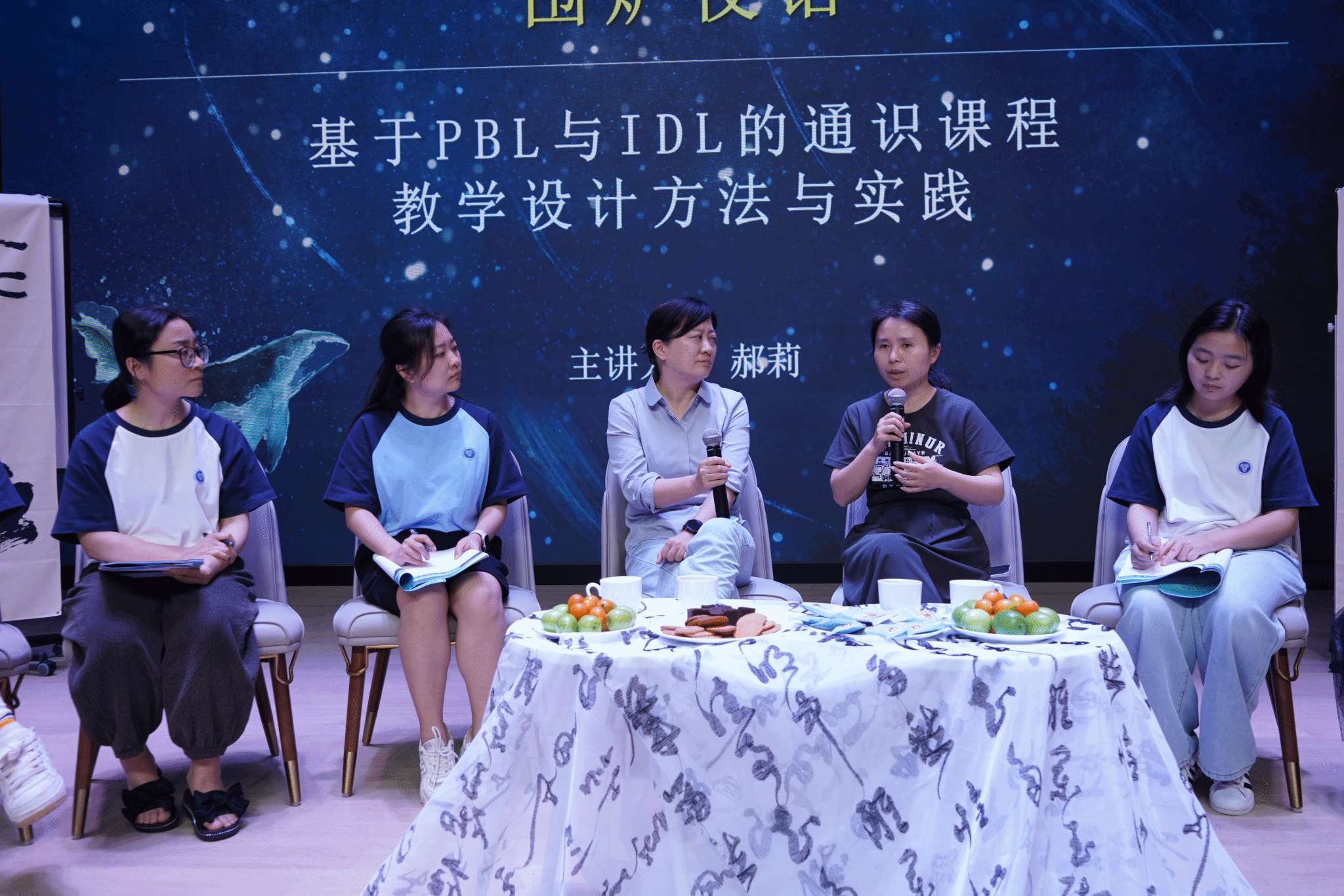 在名师工作坊,在场的教师们进行分组研讨,沉浸式地学习和感受了跨学科创新教学的魅力。郝莉教授从跨学科教育定义、跨学科课程建设等方面系统阐释了“跨学科”的概念及内涵,她指出跨学科教育不是简单的多学科教育,而是建立在多个学科基础之上加以整合,来研究复杂现实问题。其次,针对如何进行跨学科教学创新设计,郝教授从初步教学设计、教学目标设计、总体学习过程设计、子任务/特定问题教学设计四个维度与老师们进行了探讨,提出教师注重培养学生适应未来的能力和素养,让学生获得合适的问题。《社会学》课程教师李梦瑶、《正义论》课程教师罗磊、《音乐剧》课程教师石权、《艺术史》课程教师赵丹、《法律与社会》课程教师刘达、《生命科学中的伦理》课程教师陈春彦等老师分享了自己在教学实践中的探索与创新。郝莉教授指出要创设“学生参与的真实实践”,即为学生创设真实、有意义、符合其发展特点的实践环境,使他们有机会不断整合、应用并迁移所学,进而有效突破学科边界的限制。老师积极参与每个研讨分享环节,讲述自己的教学实践,品析他人的改革探索。在郝莉教授的引导下,老师们迸发出了关于项目式跨学科教学的智慧火花。