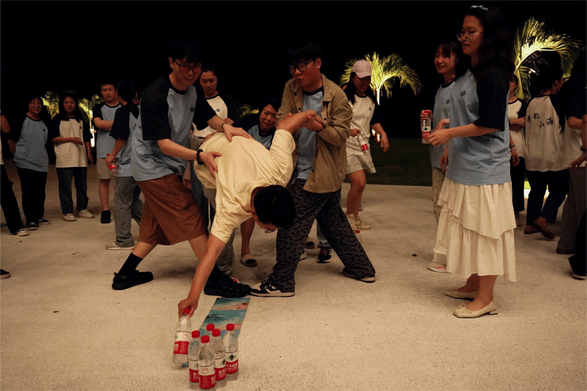为了进一步加深小组成员间的了解与信任,为后期培训的充分交流沟通夯实基础,3月29日傍晚,全体成员齐聚天涯南海度假酒店户外草坪,共同参与“乘风破浪·聚力同行”破冰活动。大家以小组为单位参与完成“名字大作战”、“团队文化展示”、“群龙取水”、“超级接力赛”4个环节活动。每一个困难都是我们成长的机会,各小组面临活动各种挑战与困难,彼此支持与帮助,完成每一项任务。在此过程中,大家积极参与讨论、分享自己的观点与想法,让团队之间更加融洽与紧密,在接下来的学习中,大家也会一起携手共进,围绕通识教育建设与大学生成长去发掘、学习、不断创造,培养更多通识之才。